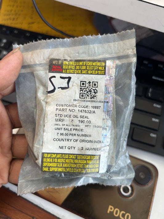 Royal Enfield 147632/A – Oil Seal Fork Assembly | Genuine Spare for Classic 350, Classic 500, Standard 350 (UCE)