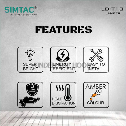 Simtac T10 LED Indicator Bulbs for Motorcycle & Scooter – 360° Reflection, Plug‑n‑Play, 10× Energy Saving