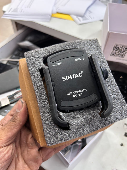 SIMTAC Super Grip Mobile Holder with charger ( QC 3.0) Bikes/ Scooters| MHC3