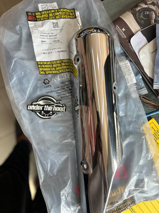 Royal Enfield Silencer Assembly 591860/N (Plated, OEM) — Classic 350 UCE BS3 & Classic 500 EFI BS3 — India Domestic