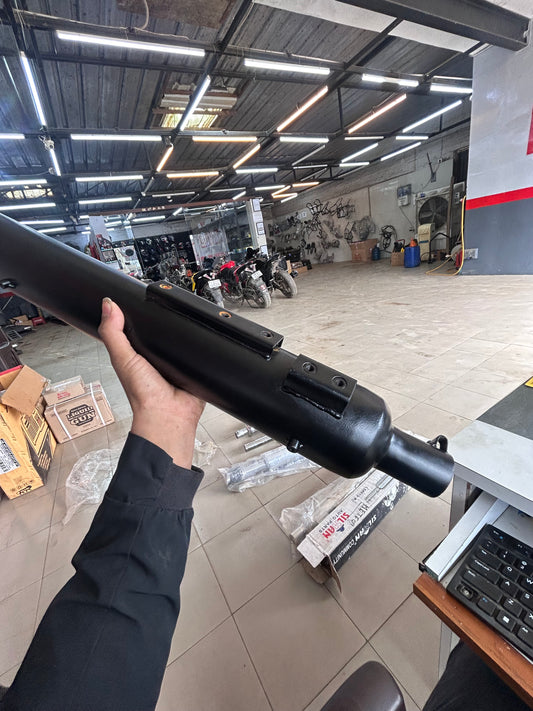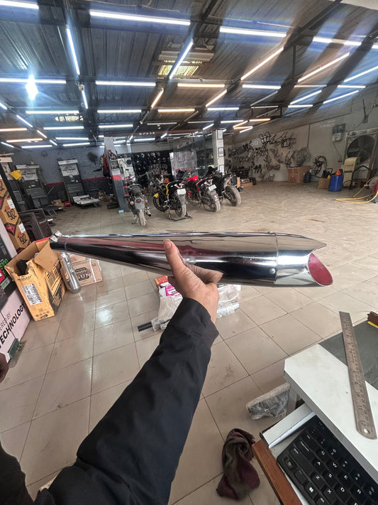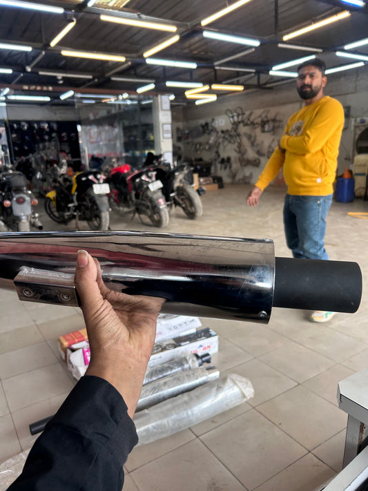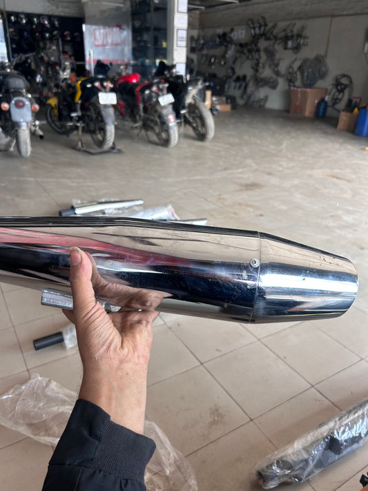 SILMEN Shark Style Silencer Exhaust With Glasswool for BS3 and BS4 Model Royal Enfield Bullet 350cc and 500cc