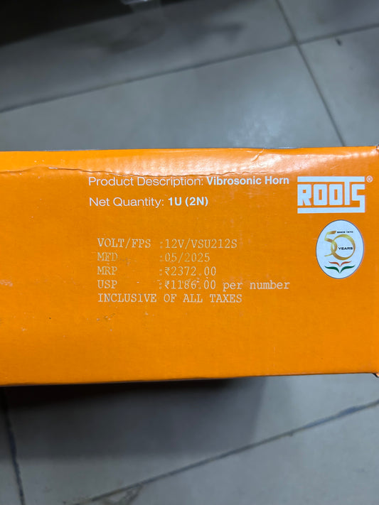 Roots Vibrosonic Horn 12V – Dual Tone Loud Horn for Bikes & Cars | Compact, Reliable & Waterproof