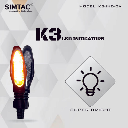 Simtac K3 LED Bike Indicators – 12V, 3W Each, Universal Fit, 24-Month Warranty