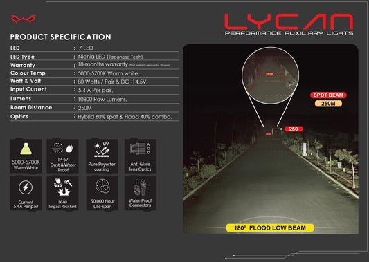 Maddog Lycan 80W Dual-Beam Auxiliary LED Lights (10,800 Lumens, 7 Nichia LEDs, IP67) – Universal 12V – Pair