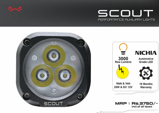 Maddog Scout – 20W Auxiliary LED Fog Lights (2800 Lumens, 3 Nichia LEDs, 100% Flood Beam, IP67) – Universal 12V – Pair