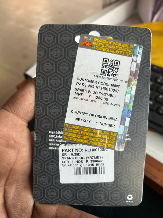 Royal Enfield RLH00100/C Spark Plug (YR7MES) – For Classic Reborn, Hunter 350 & Meteor 350