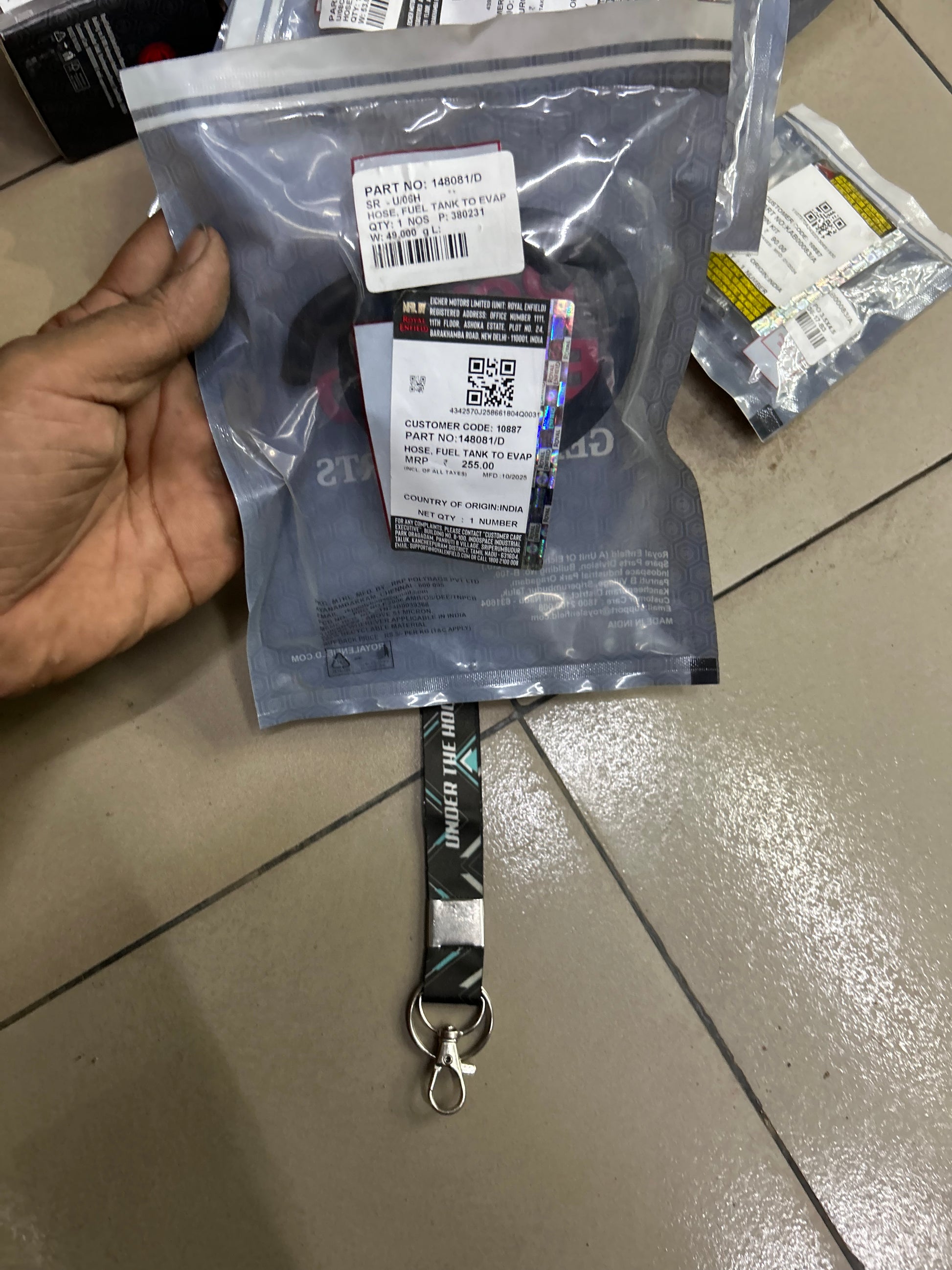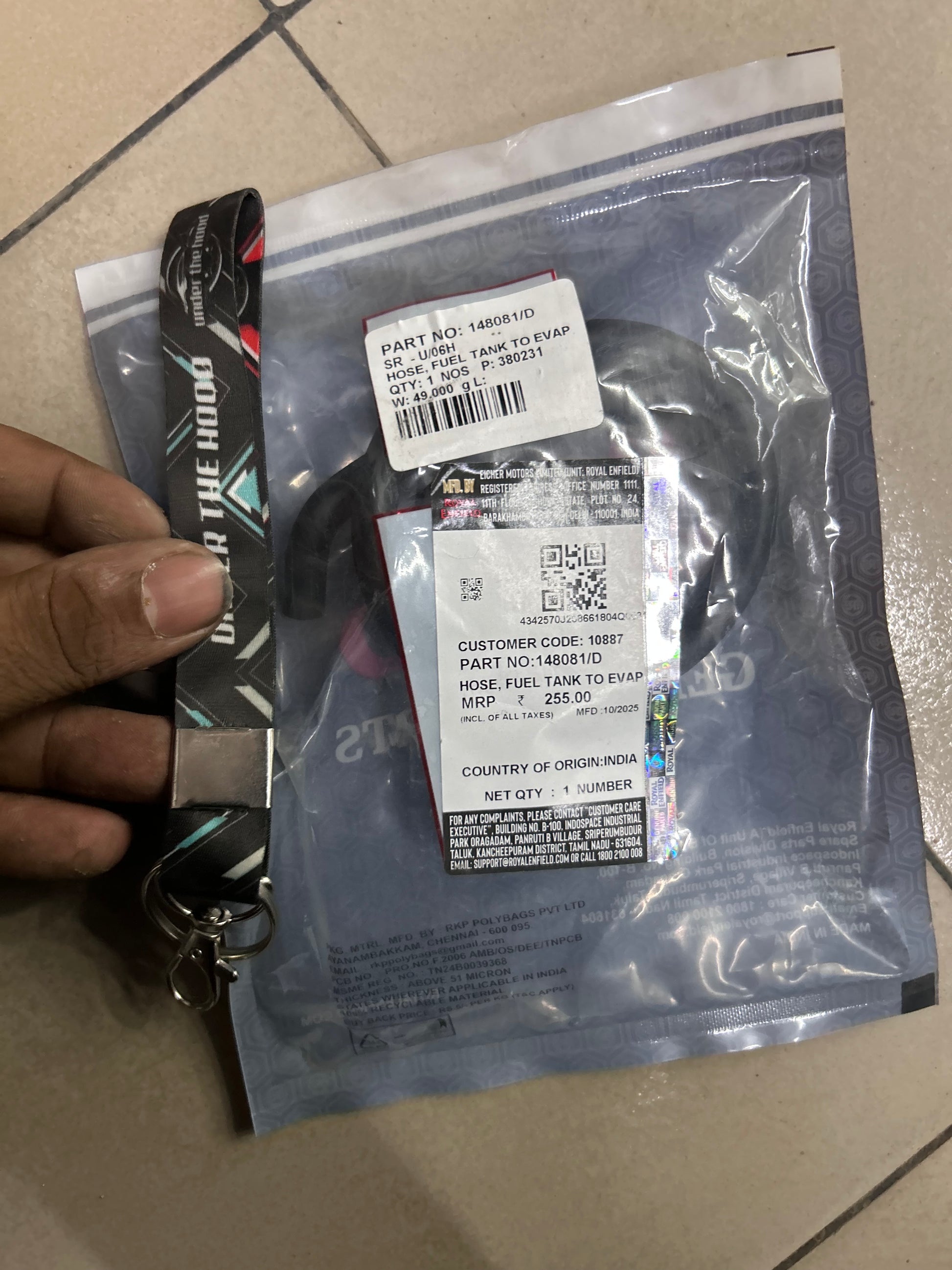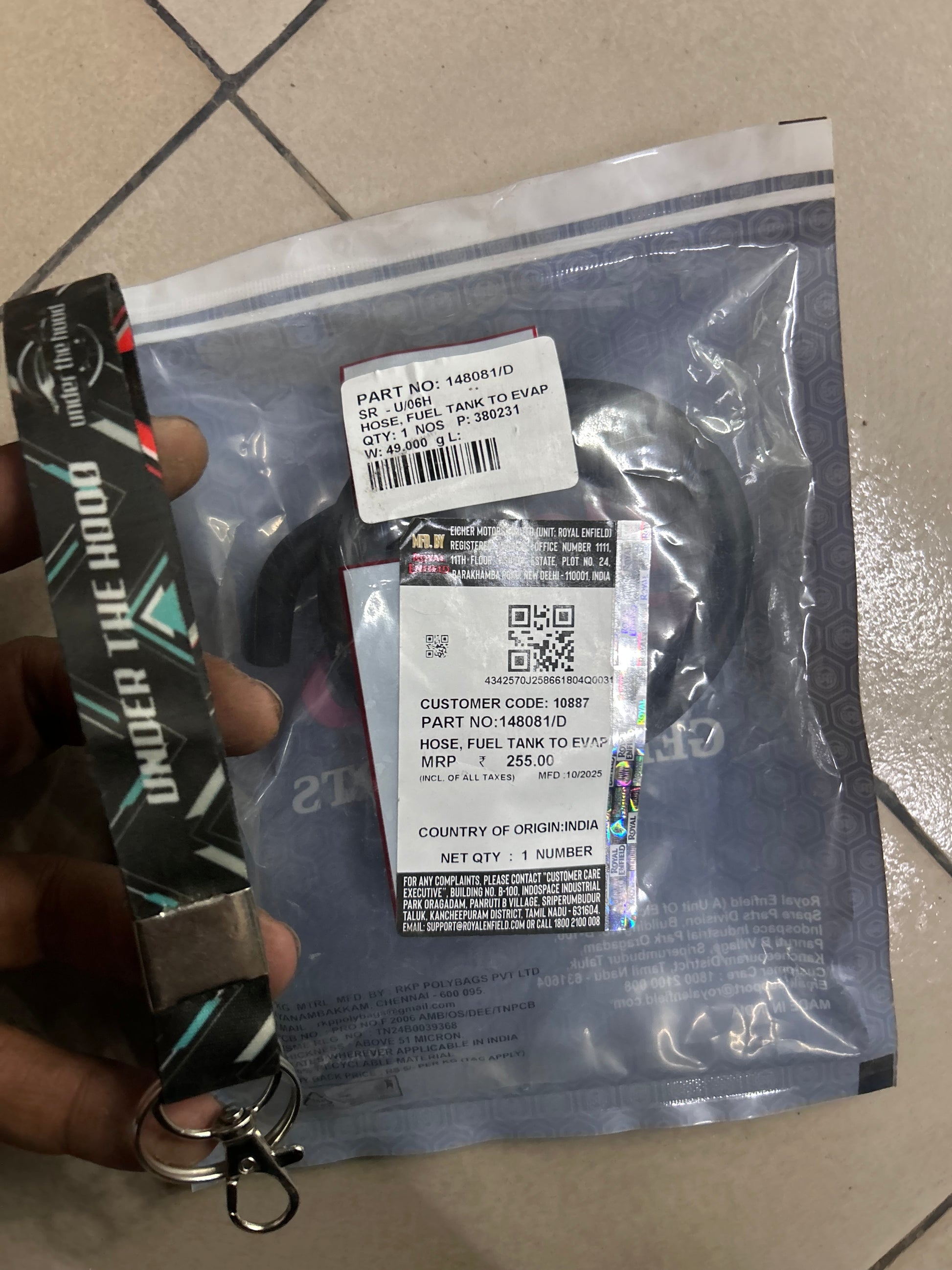 Genuine Royal Enfield hose 148081/D – fuel tank → EVAP/canister.