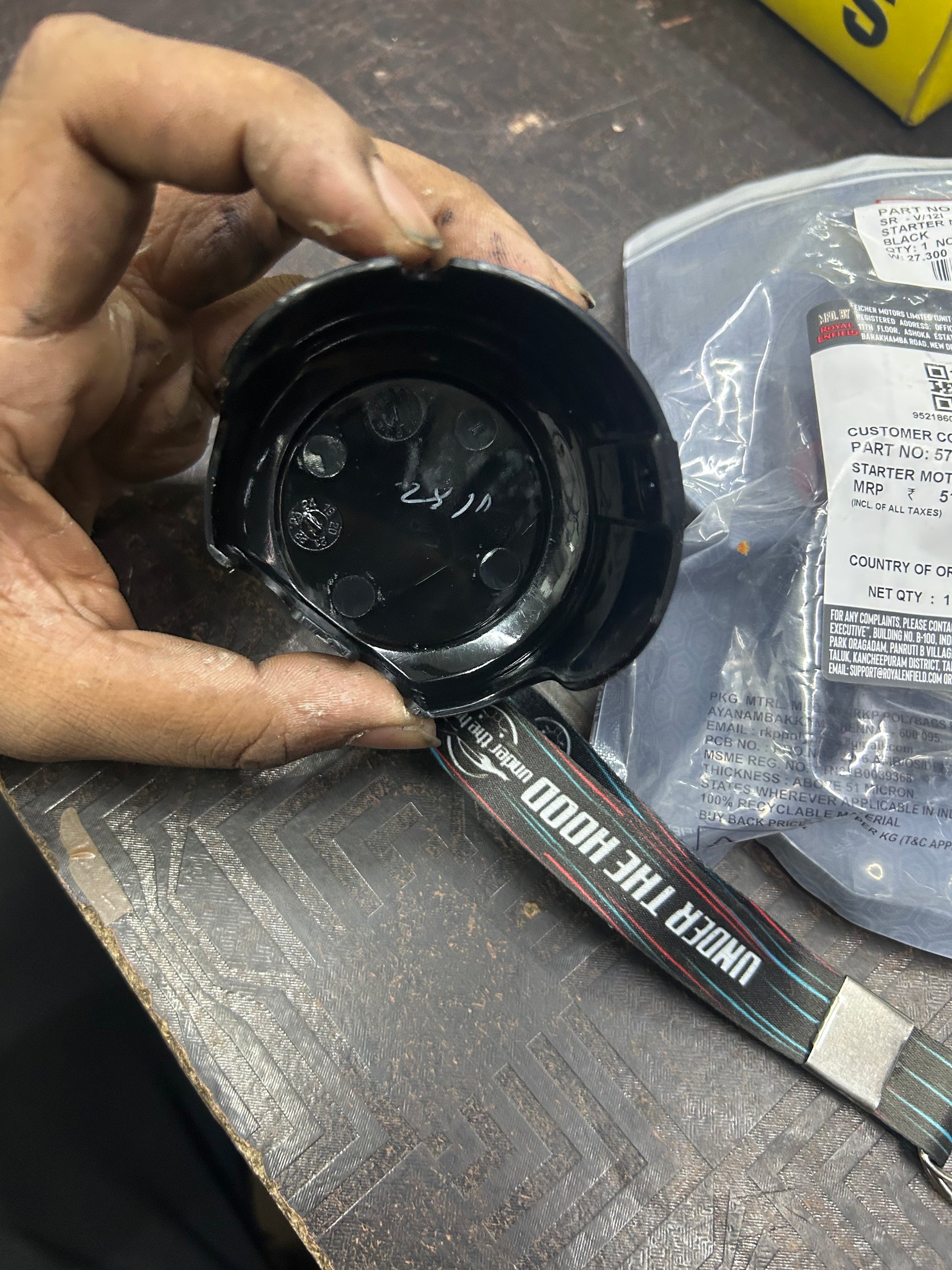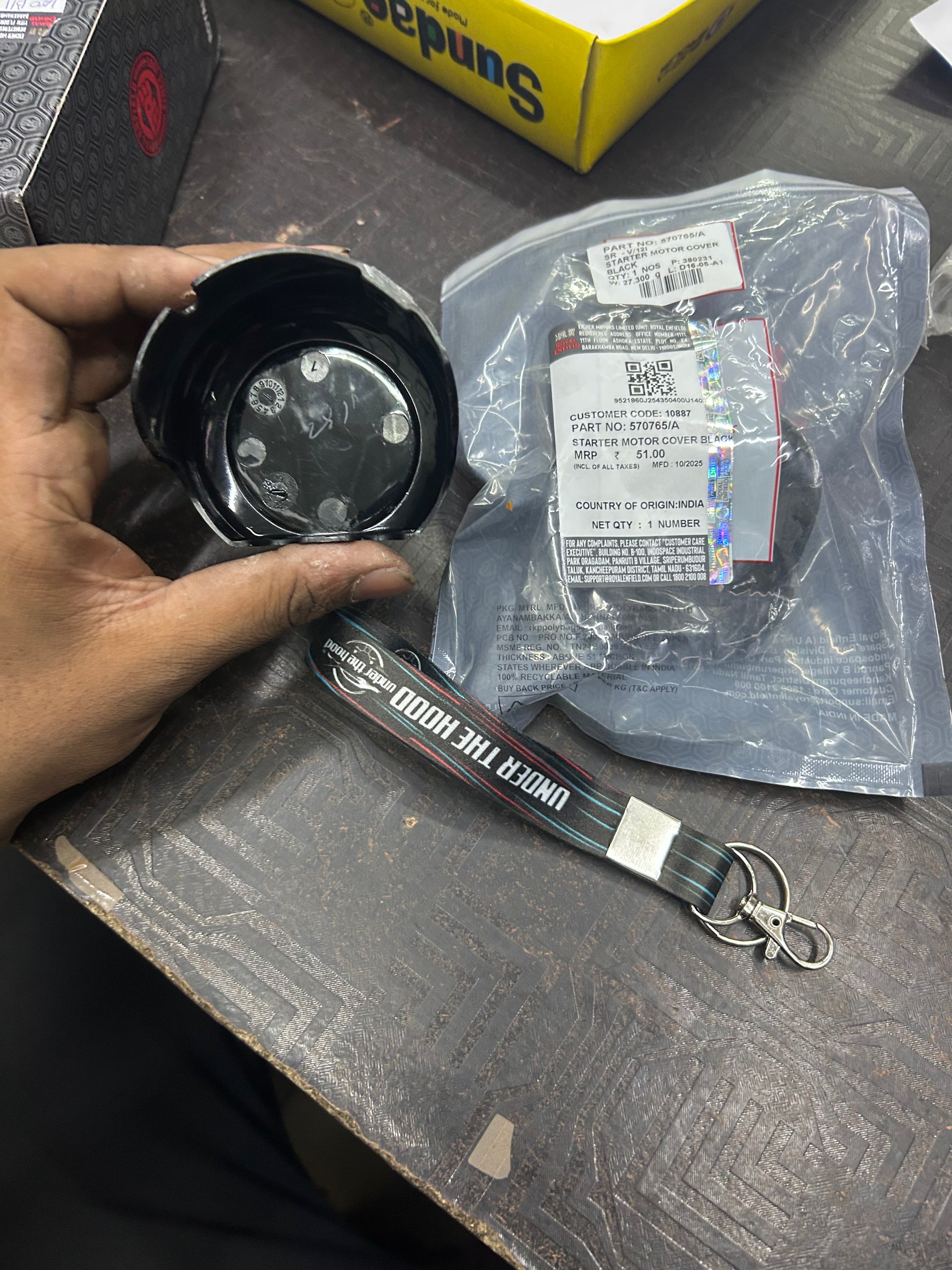 It’s a protective cosmetic cap that press-fits over the starter motor body, keeping debris and moisture away while restoring OEM appearance.