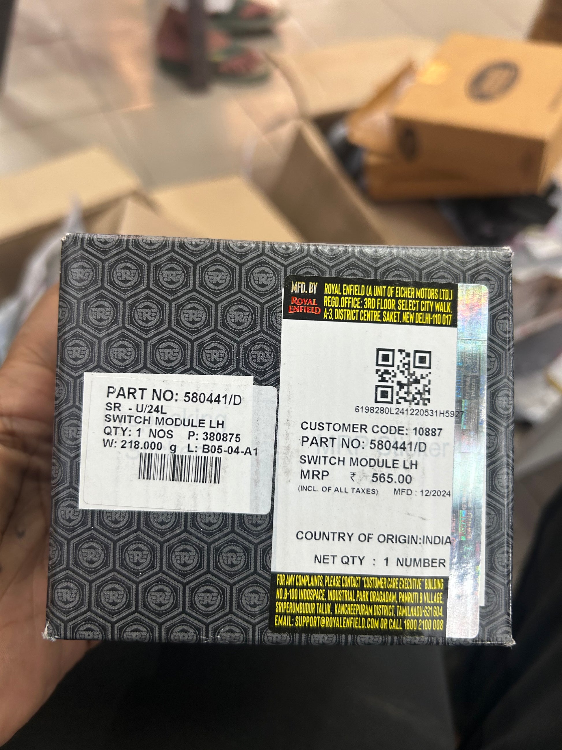 Upgrade your Royal Enfield’s left-hand control system with the Genuine Royal Enfield 580441/D Switch Module LH. Designed for seamless functionality, this original replacement ensures accurate headlight, pass-light, and indicator operations. Built with OE-grade materials for long-term durability, it’s a direct-fit component for Classic 350 BSIV, Bullet 350 ES ABS, Thunderbird 350 BSIV, and Interceptor 650 BS6 (select models). This switch offers perfect compatibility, ensuring smooth installation and reliable performance.