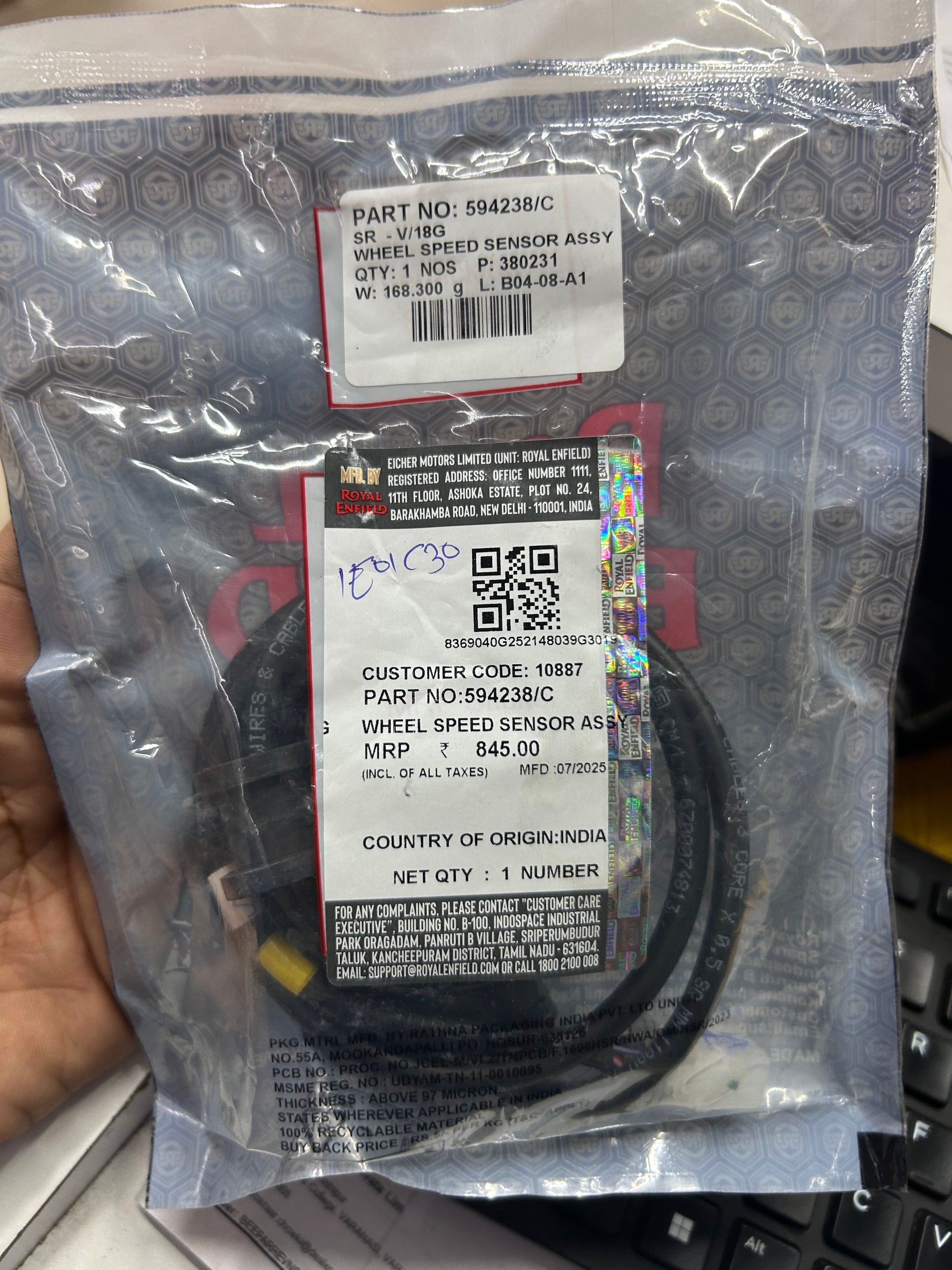 Upgrade your Royal Enfield with the 594238/C Genuine Wheel Speed Sensor Assembly – an OE-certified replacement designed for accurate wheel speed detection and ABS functioning.