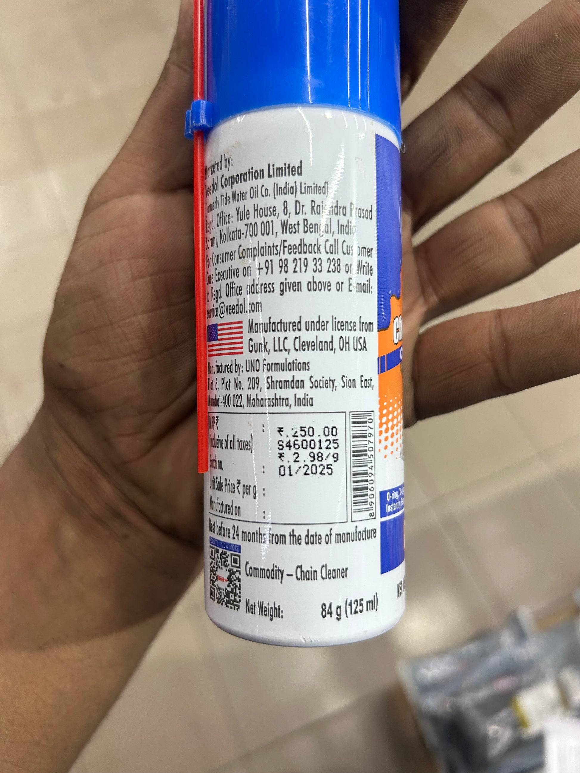 It is manufactured in India under license from Gunk, LLC, USA, and marketed by Veedol Corporation Ltd.
