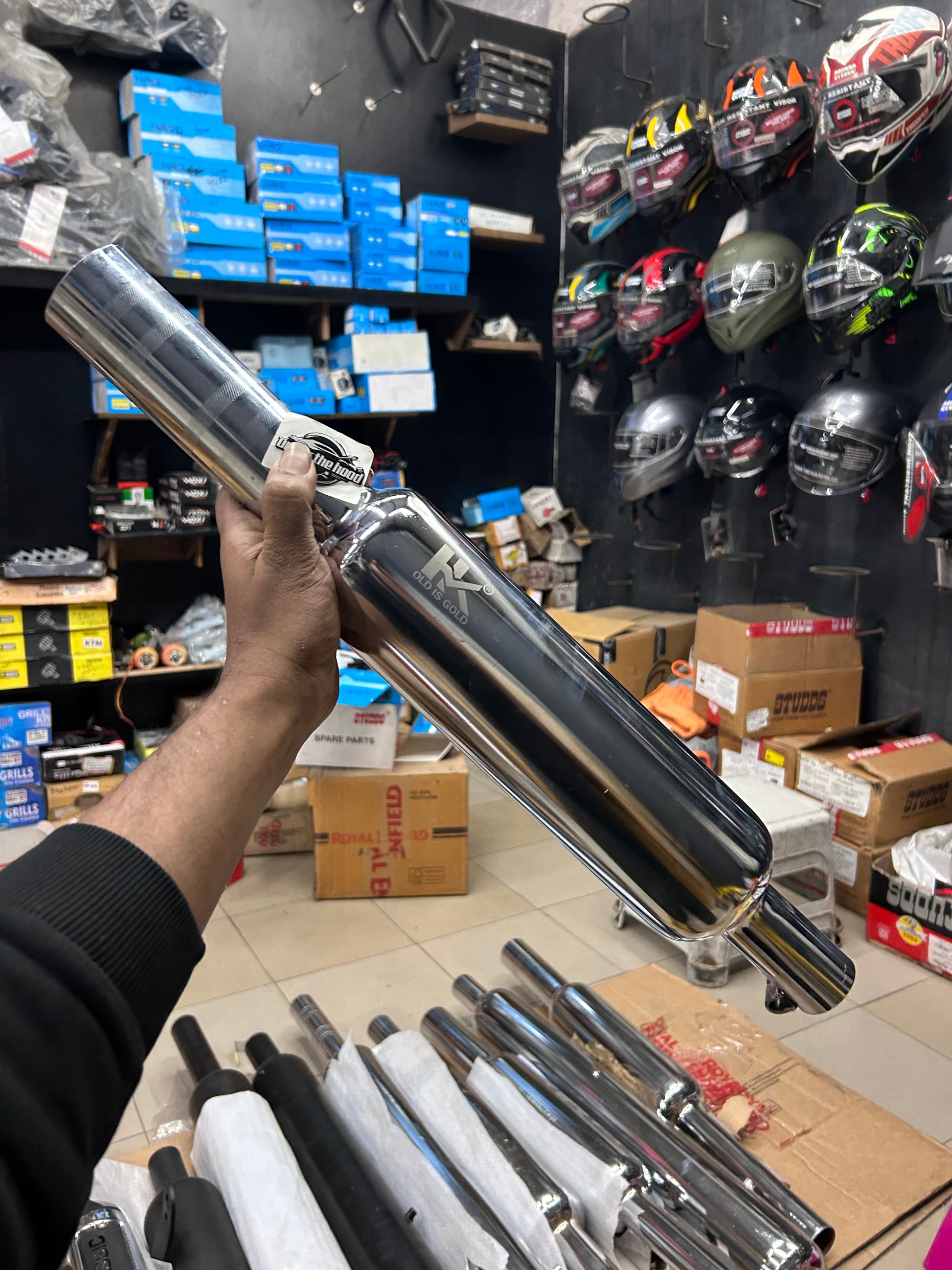 Suitable for riders searching: big mouth silencer, bada muh Punjab, short bottle exhaust