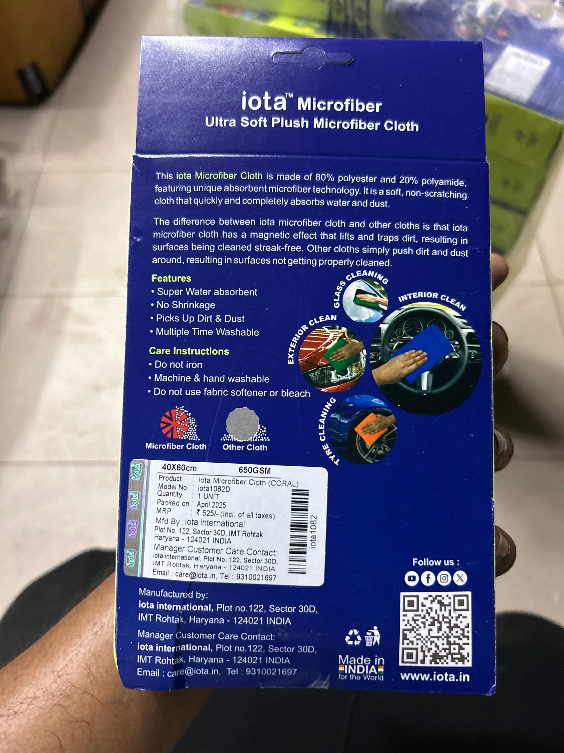 Experience streak-free, ultra-soft cleaning with the Iota Microfiber Cloth XL (650 GSM). Made from a high-absorbency blend of 80% polyester and 20% polyamide, this premium 40x60 cm towel is designed for deep cleaning of vehicles, interiors, and glass surfaces. Its dense 650 GSM fabric lifts dirt and dust effectively without scratching, making it perfect for professional or home detailing use.