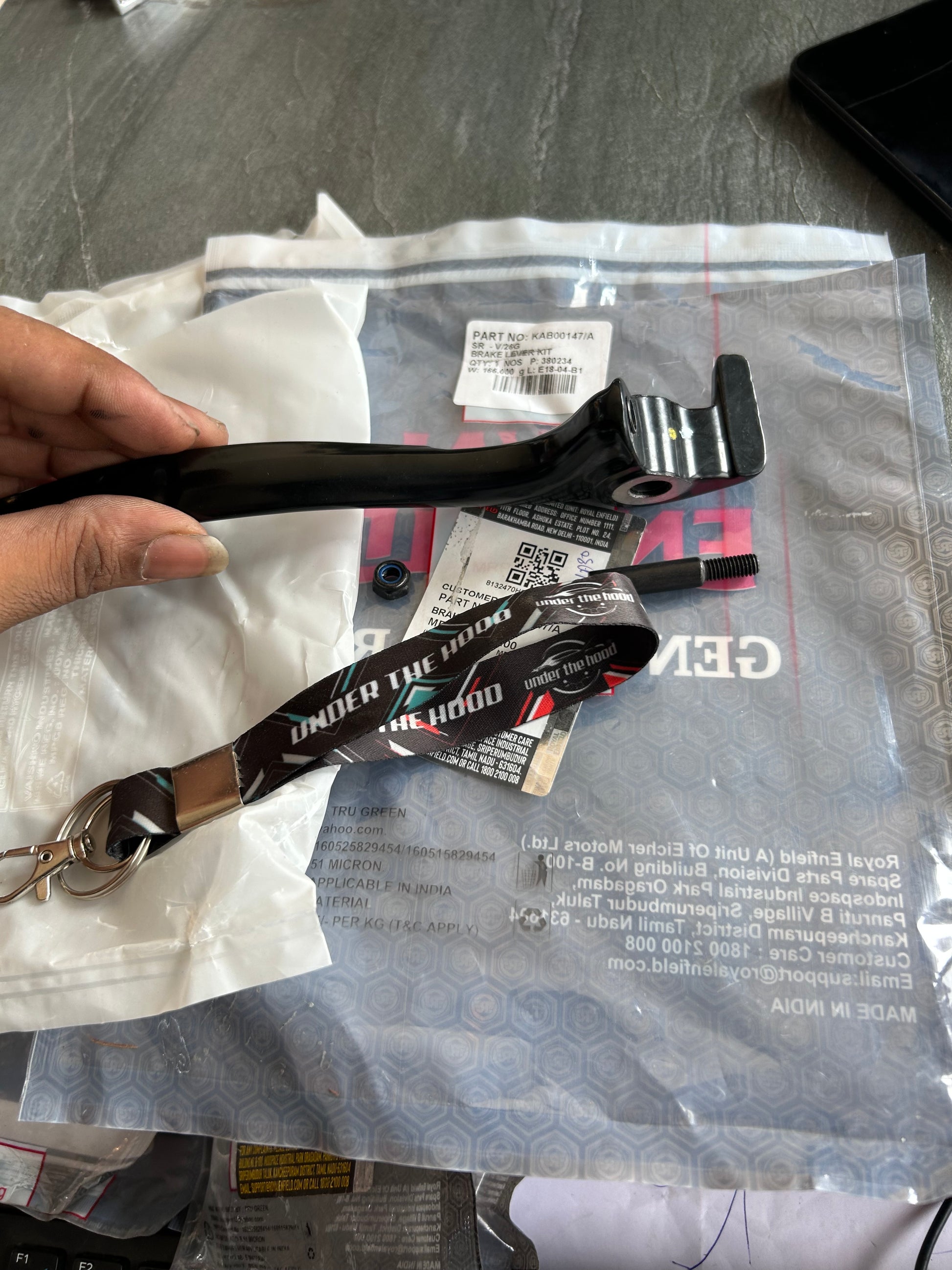 Restore your Royal Enfield's braking efficiency with the KAB00147/A Front Brake Lever Kit. This authentic OEM part guarantees a precise fit and optimal performance, keeping your motorcycle's braking system in top condition.