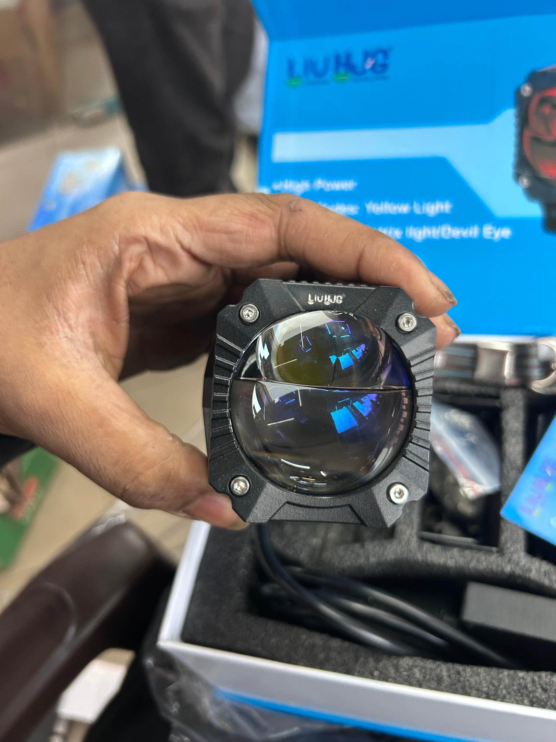 Upgrade your night rides with the LIU HJG HXK-P108 “Guerrilla/Gorilla” Projector Fog Light—a compact, high-output auxiliary lamp designed for riders who want real throw + usable spread in fog, rain, and highways. This model is marketed as a Gorilla/Guerrilla projector fog light by multiple sellers , and your kit packaging highlights 4 modes: Yellow / White / Matrix light / Devil Eye.