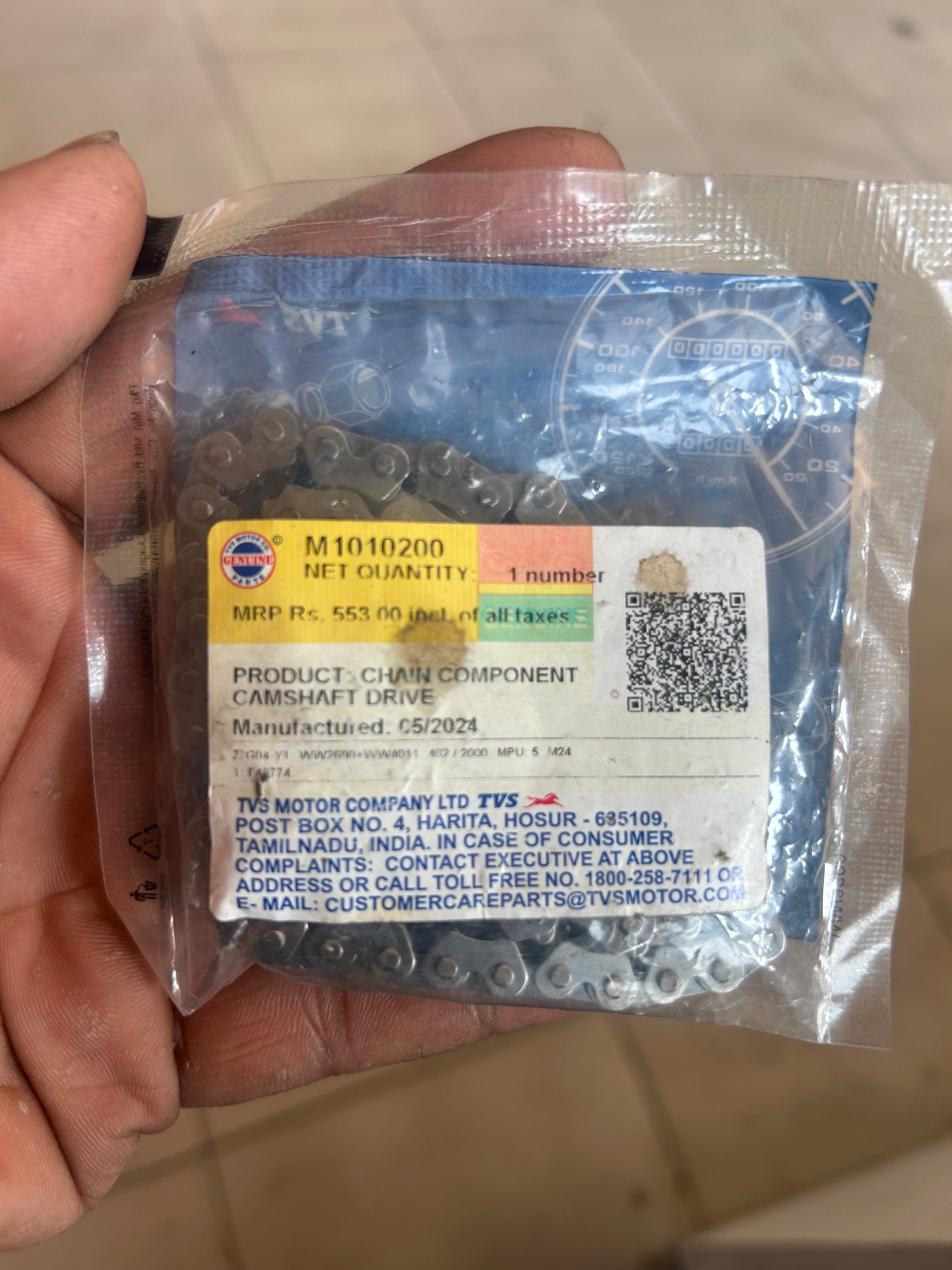 Keep your engine in perfect sync with the M1010200 Camshaft Drive Timing Chain, designed specifically for TVS Apache RTR 160 and 180 2V models. This high-quality, durable component ensures accurate valve timing and smooth engine performance. It’s a 100% Genuine TVS Original Part, built to deliver long-lasting reliability and performance.