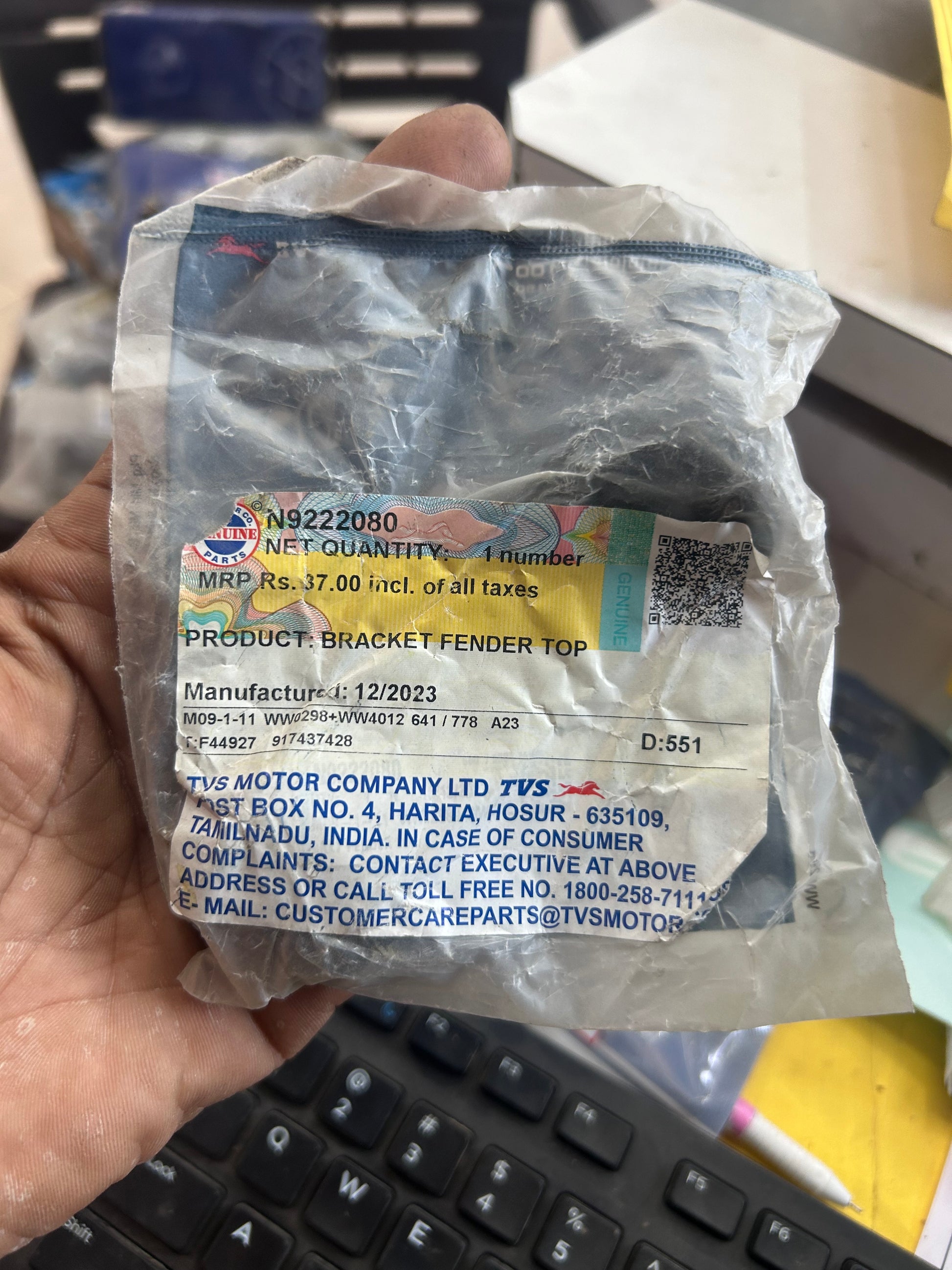 Ensure the structural integrity and proper alignment of your motorcycle's rear fender with the N9222080 Bracket Fender Top, a genuine OEM part designed specifically for the TVS Apache RTR 160. This high-quality bracket ensures: