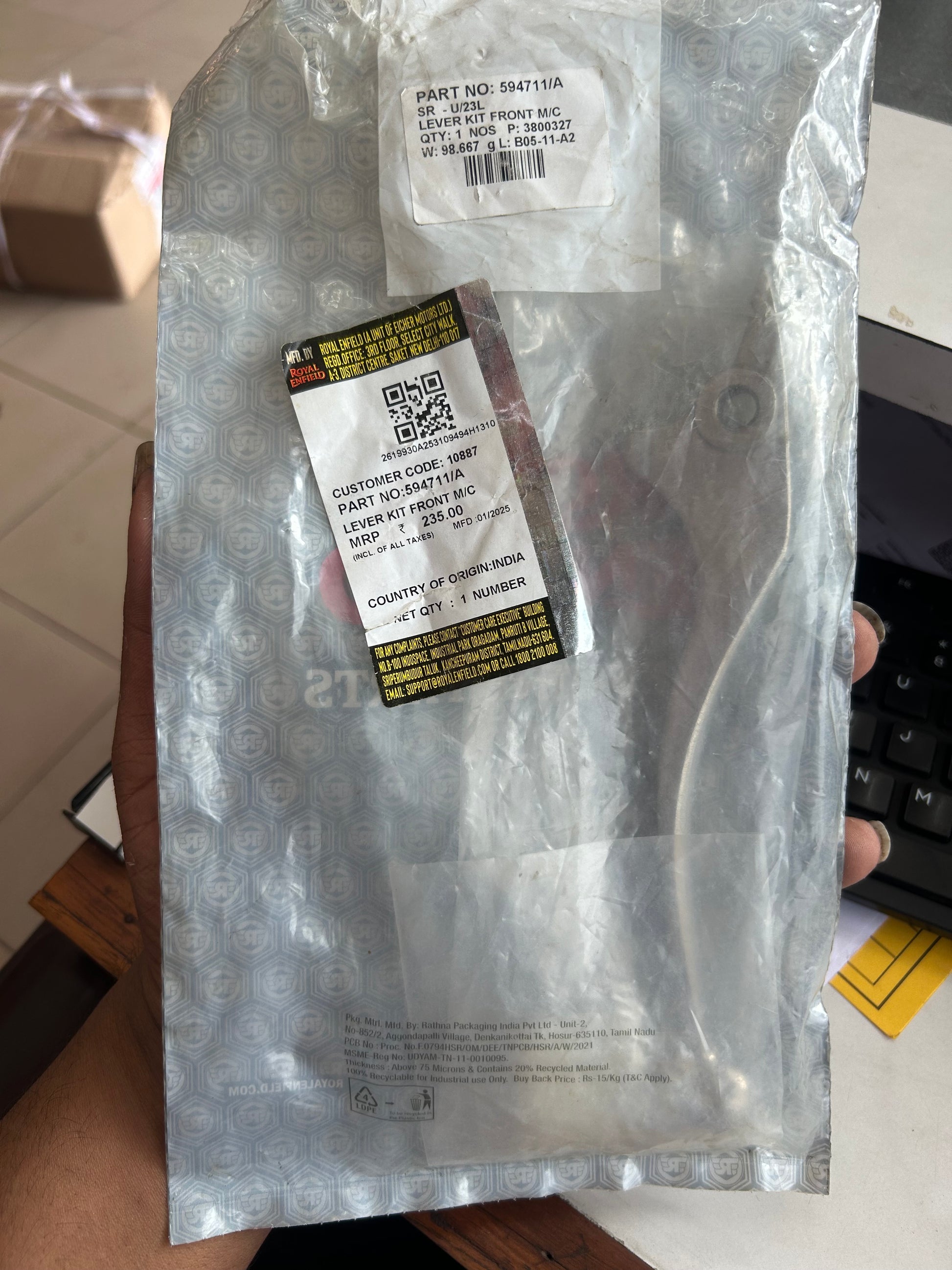 ✅ Yes—594711/A is a factory Royal Enfield brake lever matched to Brembo-style front master cylinders .