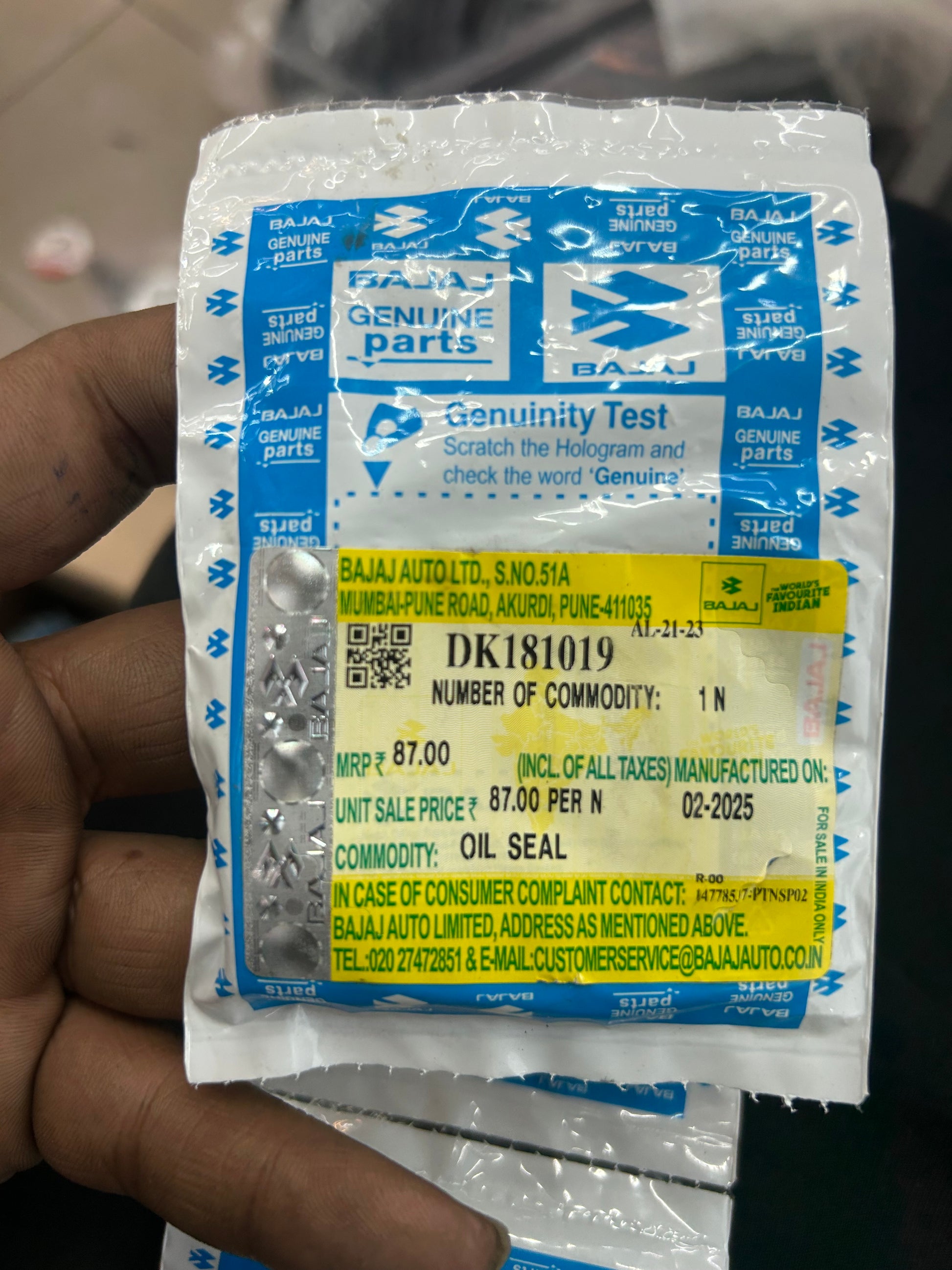 Maintain optimal suspension performance on your Pulsar with the genuine Front Fork Oil Seal (Part No. DK181019). This OEM seal prevents oil leakage and ensures smooth fork action. Made with factory-grade materials and packed in official packaging, it's designed for Pulsar 180, 200NS, RS200, and 220 models. Ideal for rebuilds or maintenance, it's a reliable replacement for keeping your front forks performing like new.