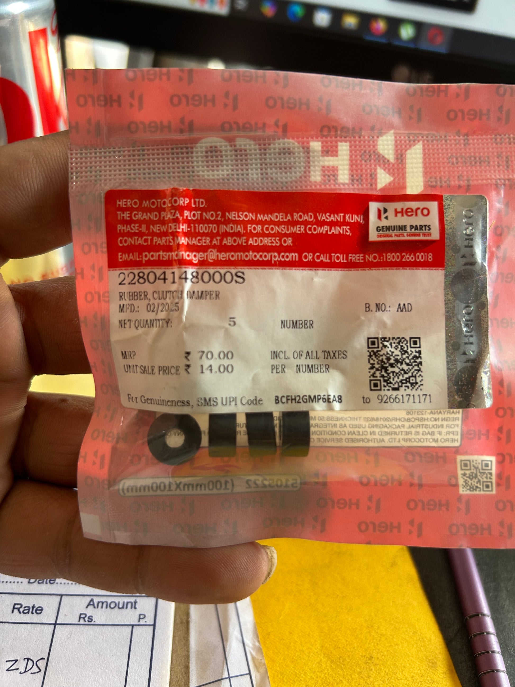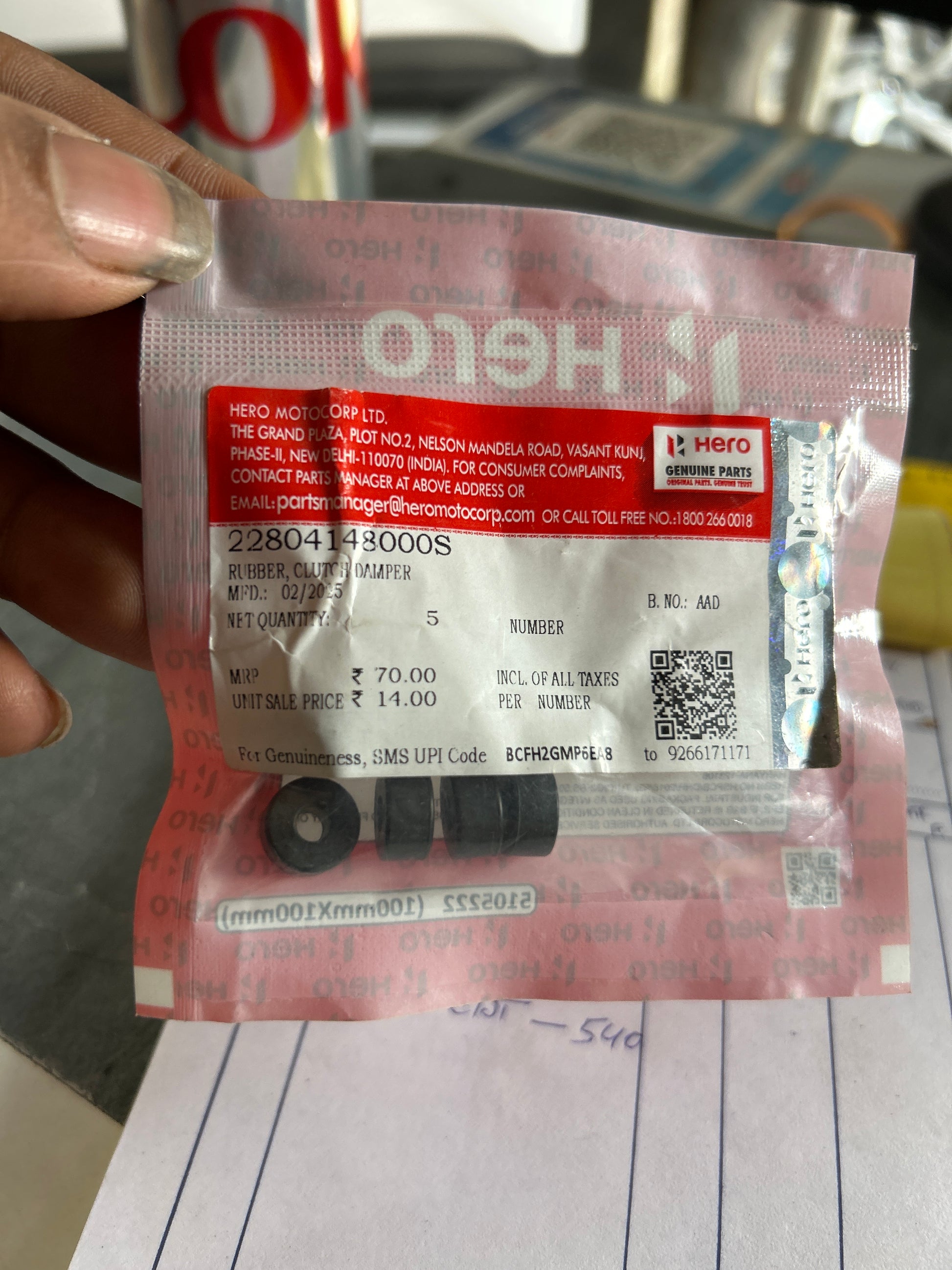 Hero 22804148000S Rubber Clutch Damper – Universal for Activa, Maestro, Jupiter, NTorq, Pleasure