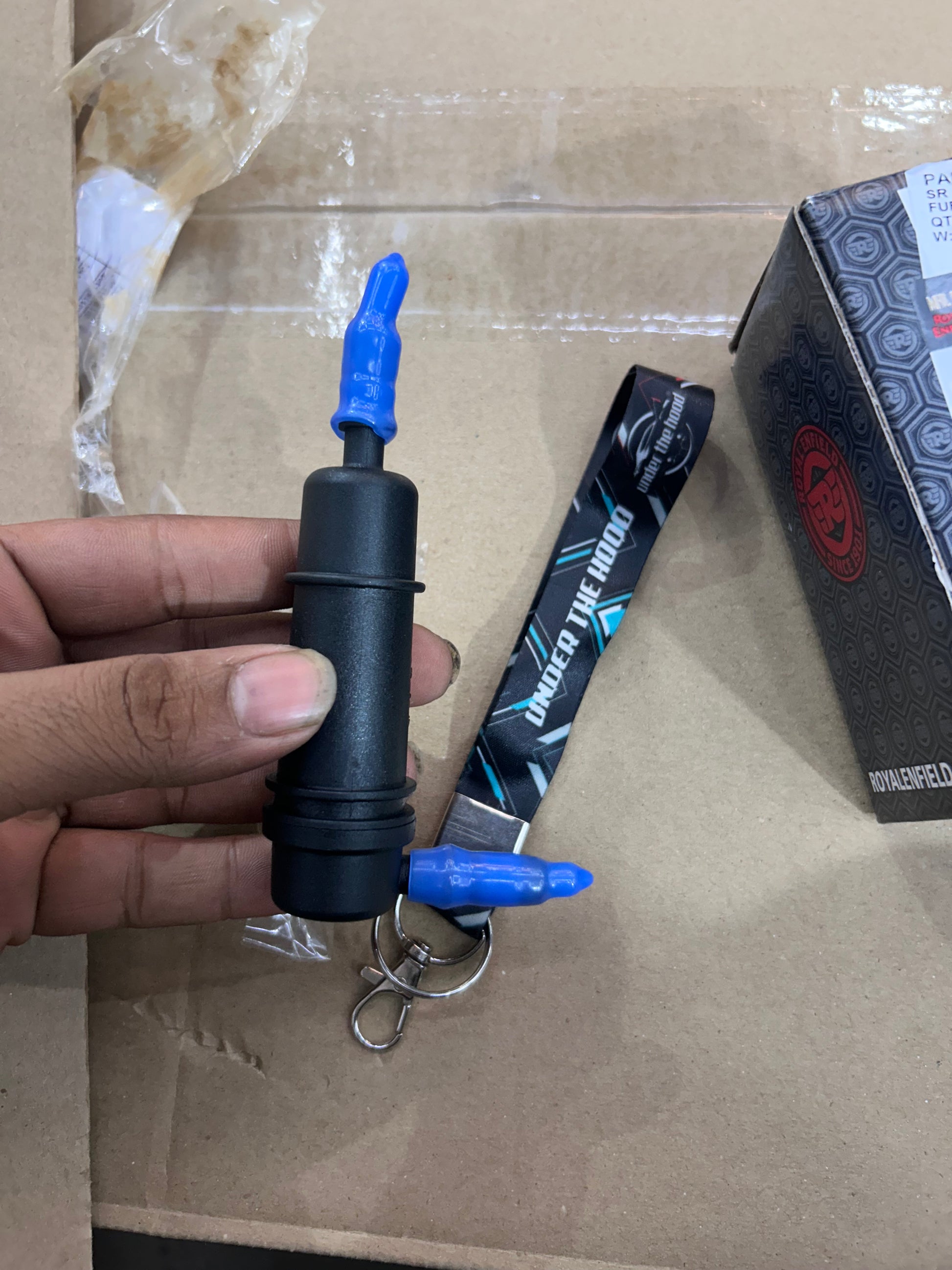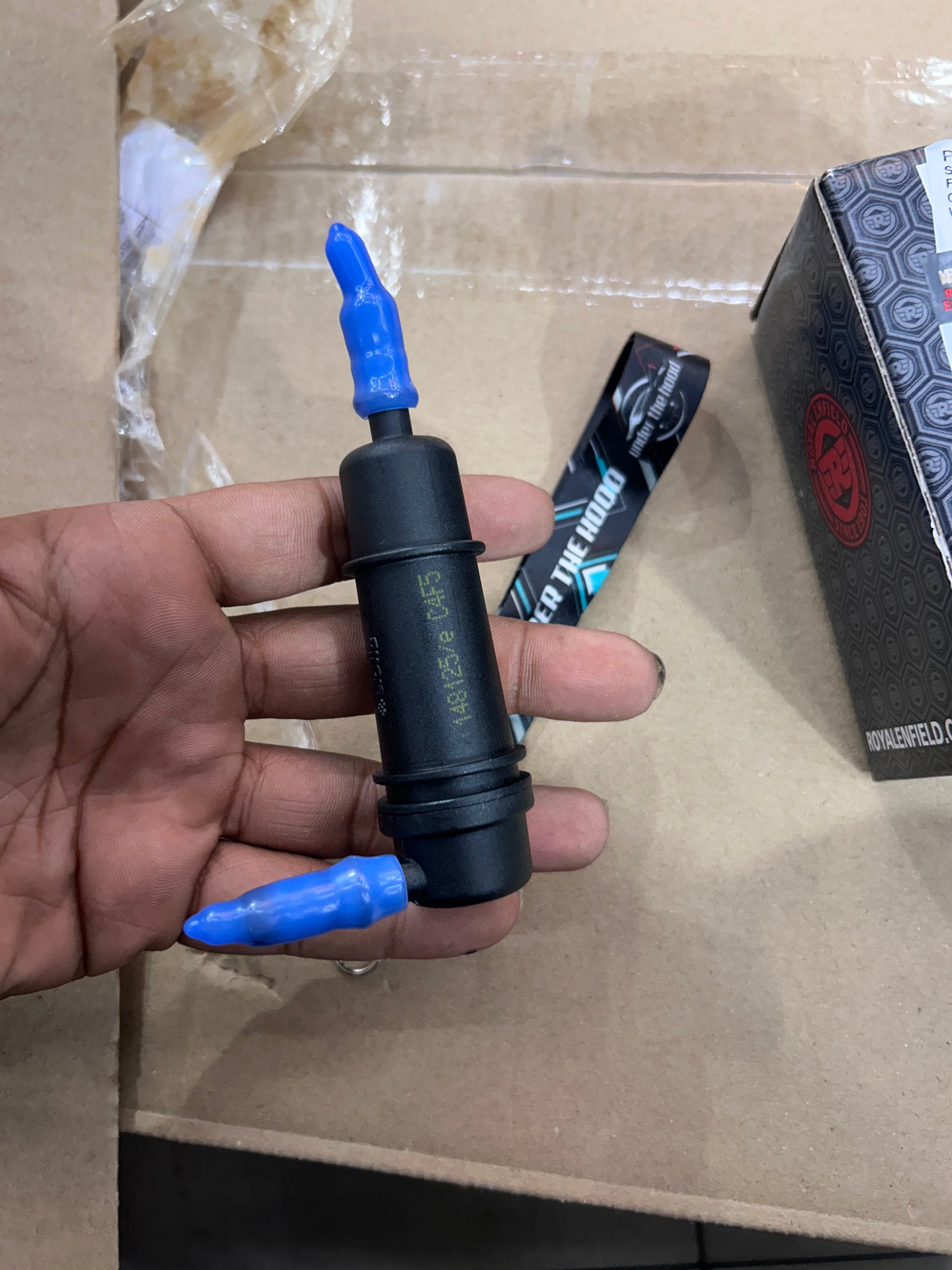 It’s a genuine Royal Enfield fuel filter used in the 650cc twin models to clean incoming fuel. -
