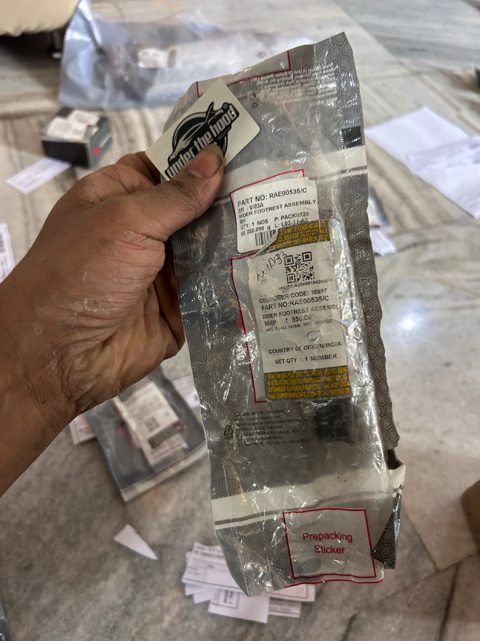 Replace a bent or scuffed peg with the genuine Royal Enfield Rider Footrest Assembly, Right-Hand — Part No. RAE00535/C. Official fiche/dealer sources list this family as “RIDER FOOTREST ASSEMBLY, RH” and map it to the Hunter 350 (J-series) and Shotgun 650. Using the OE assembly guarantees the correct bracket geometry, bushings, return-spring seat and rubber density—so it folds, sits and isolates vibration exactly like stock.
