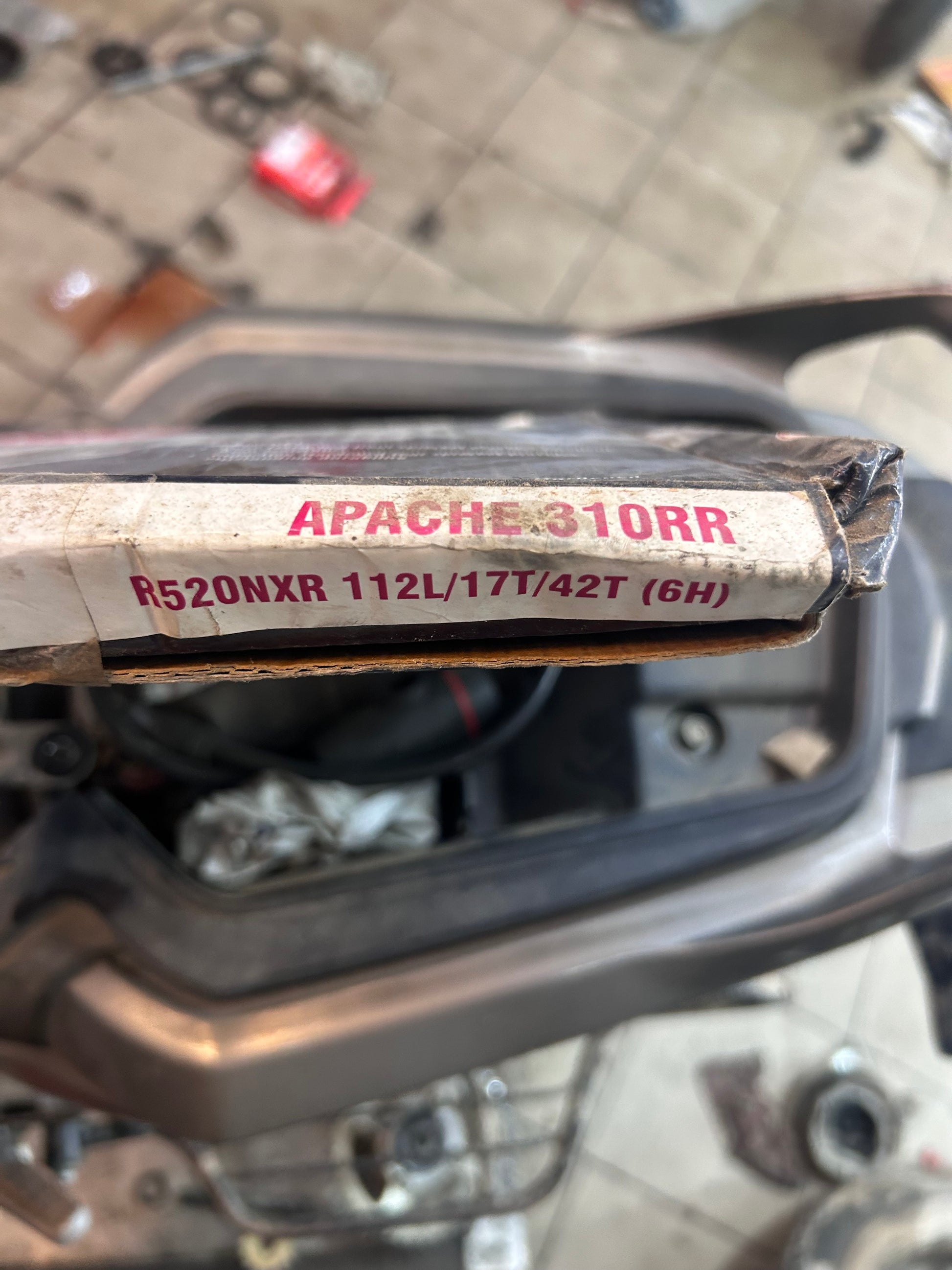 Exact OEM Gearing – 17T front & 42T rear sprocket with a 112-link R520 X-ring chain, matching Apache RR 310 stock ratio for balanced acceleration and top speed.