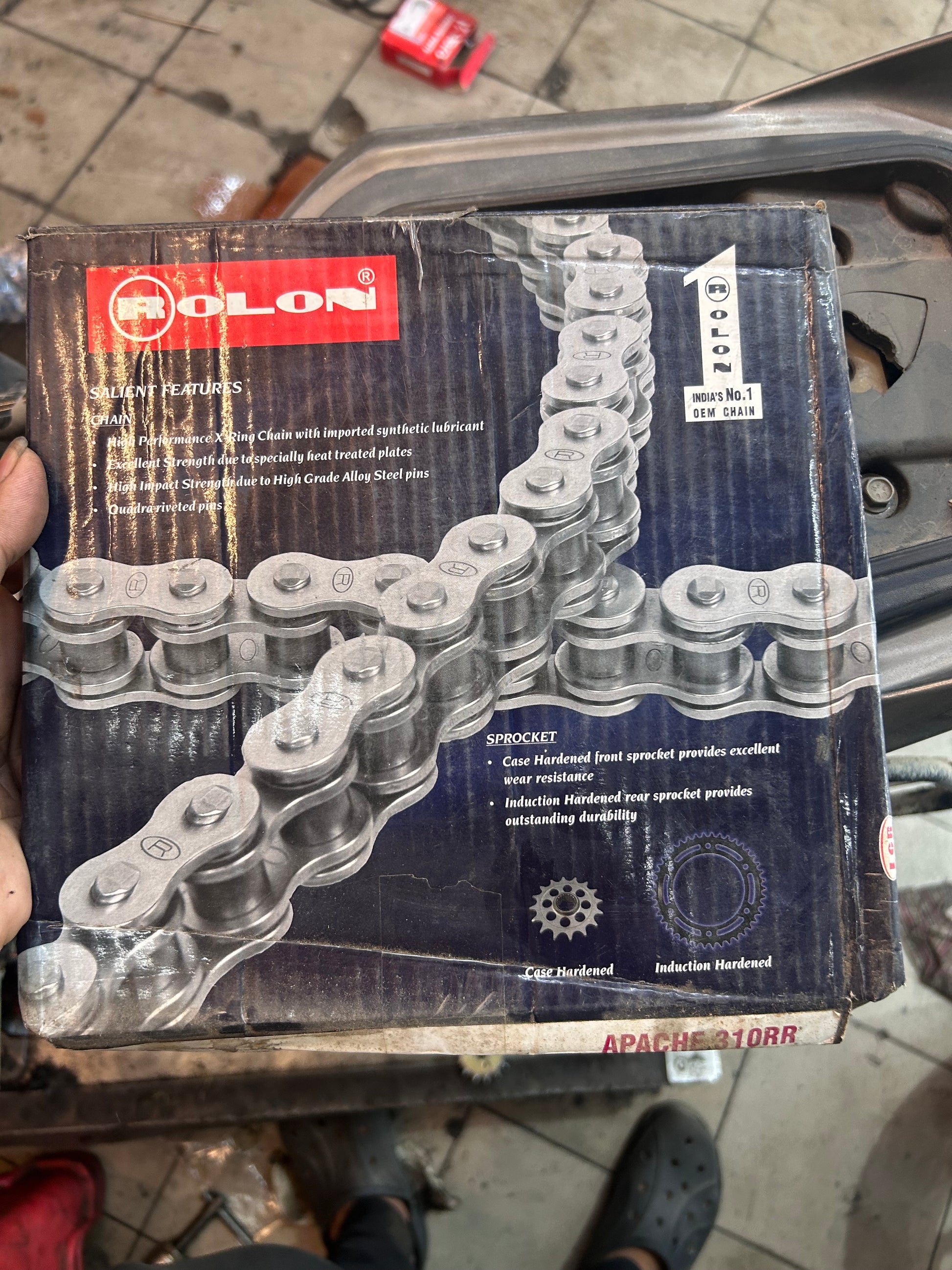 A. This is a genuine Rolon NXR 264 kit sourced from authorised distributors, the same brand supplied to major online retailers like Sap Motors and others. Under The Hood does not mix chains and sprockets from different brands or sell loose, unboxed sets.