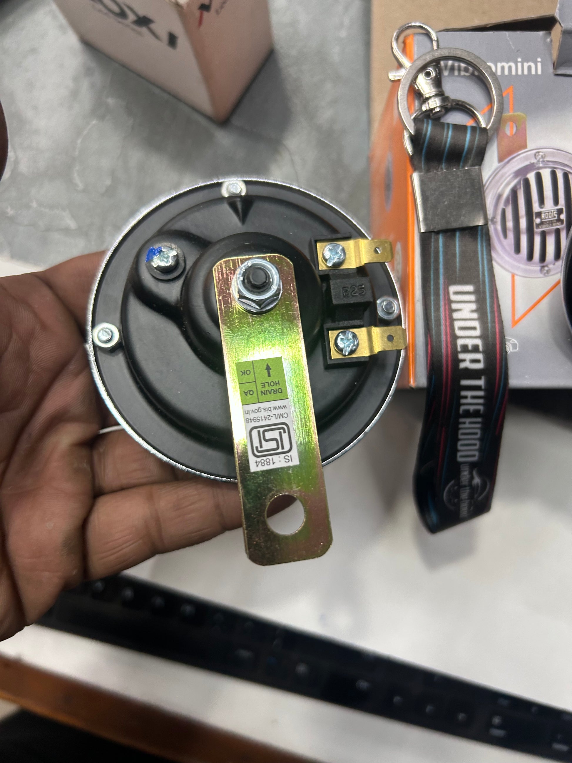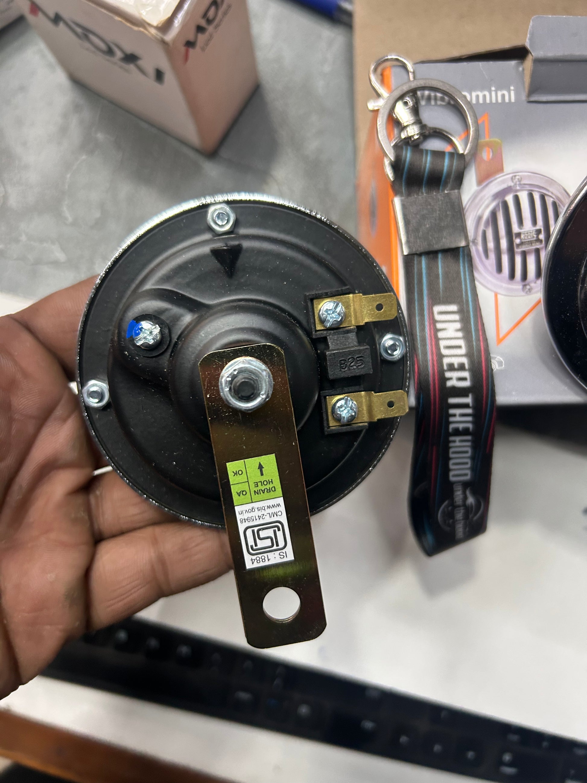 The Vibromini’s big advantage is compact fitment: it suits bikes where larger disc horns are difficult to mount behind crash guards, leg guards, or tight headlamp brackets. It’s also positioned as weatherproof, making it reliable through rain, dust, and day-to-day grime.