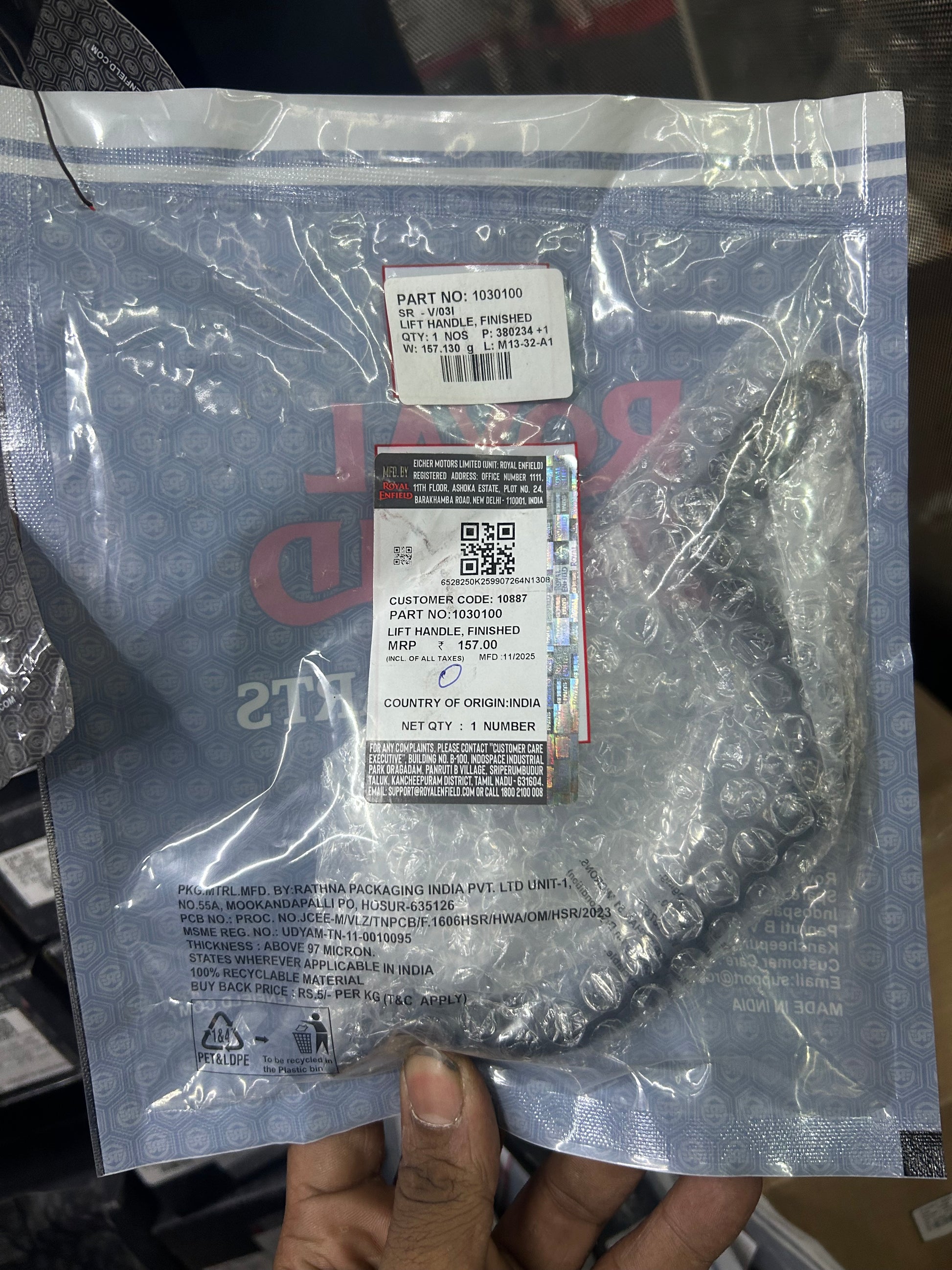 Genuine Royal Enfield Part 1030100 – OEM finished lift handle