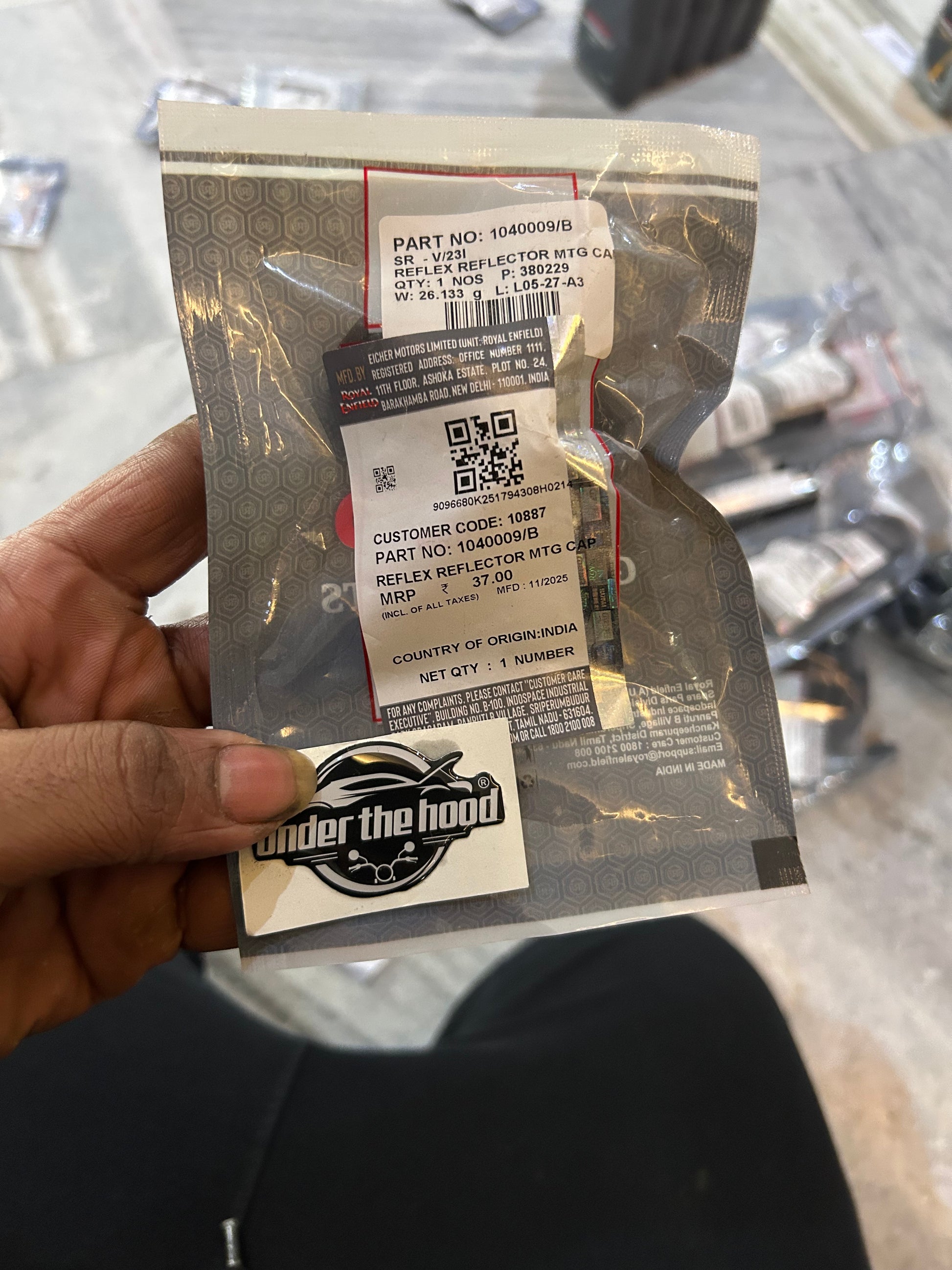 The genuine Royal Enfield 1040009/B – Reflex Reflector Mounting Cap is the small OE cover used to secure/protect the factory rear reflex reflector mounting point on multiple RE models. Dealer and price-list entries call it exactly “REFLEX REFLECTOR MTG CAP”, so it’s the piece that finishes the reflector fitment, stops it from rattling, and keeps water/dust out of the mount. Because it’s OEM, the bore, shoulder height and plastic grade match the reflector bracket used on Royal Enfield UCE and BS4 bikes, so it sits flush and doesn’t look like an odd aftermarket plug. This is the one you replace when the reflector got knocked off, the cap cracked in a minor tip-over, or you’re rebuilding the rear mudguard/tail tidy and want it to look like stock again. We’re listing it generically for RE UCE/BS4 models because the part is shown as a standalone fastener/trim item in the official part index, not tied to a single bike.