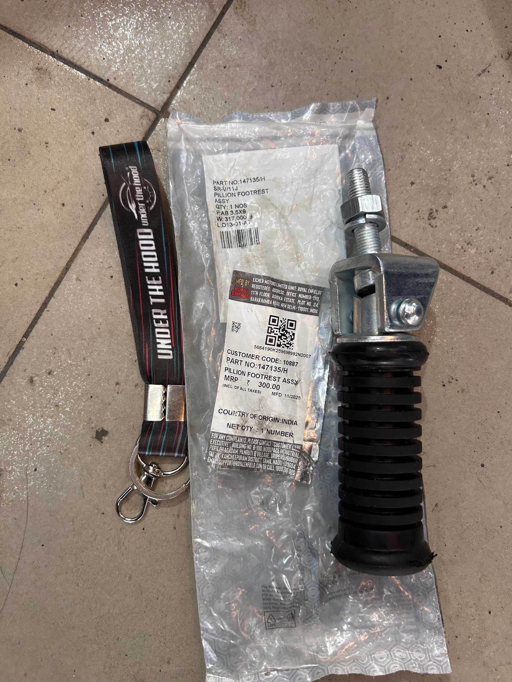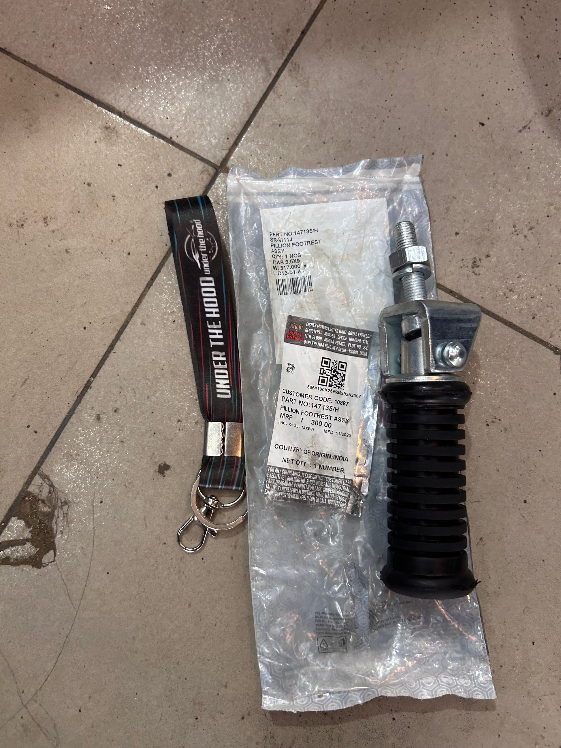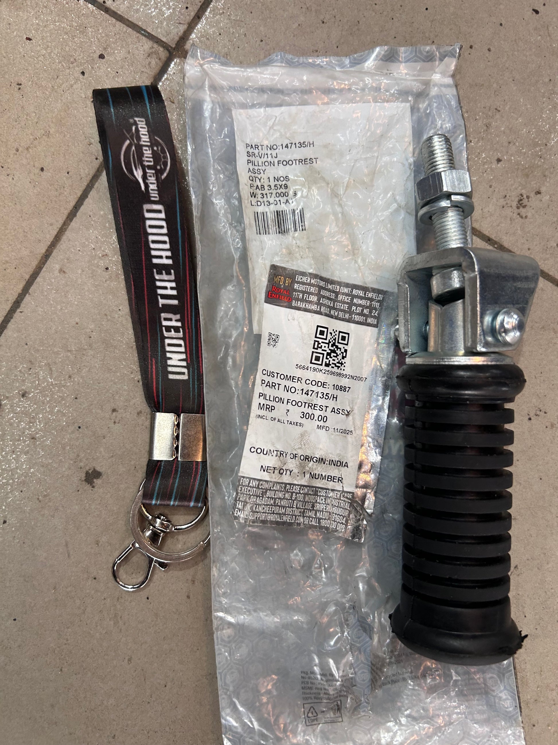 This is the fiche-listed Royal Enfield 147135/H – PILLION FOOTREST ASSY. Dealer sources in India and EU show this exact number for Bullet 350 UCE (KS & ES), Bullet 500 UCE / EFI / Euro 3–4, Classic 350 Classic 500 UCE DIRECT FIT