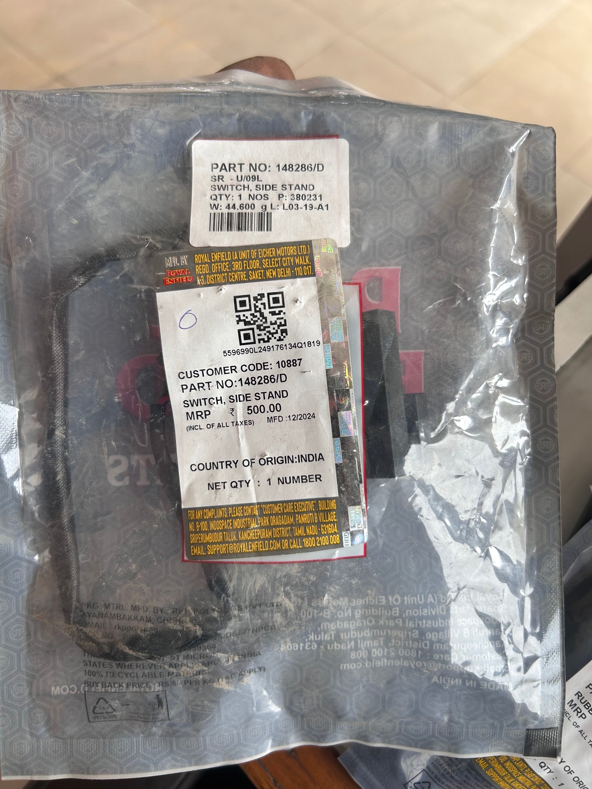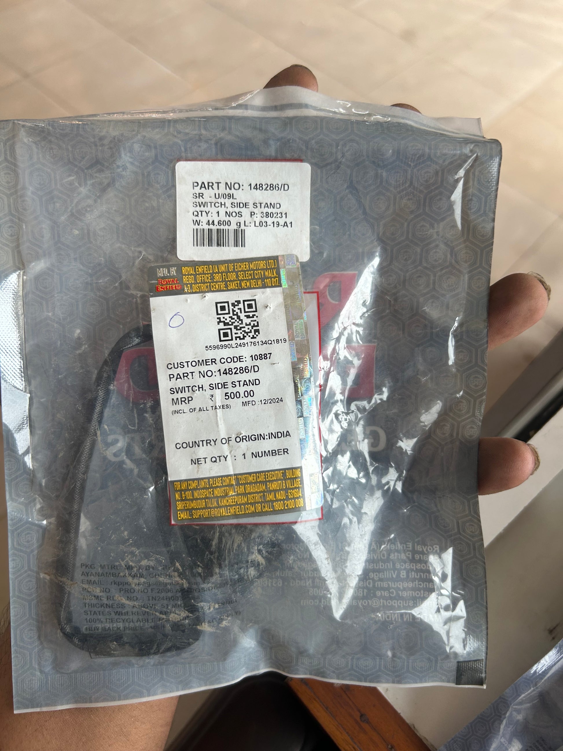 Ensure safety and performance with this genuine Royal Enfield 148286/D side stand switch, designed specifically for Interceptor 650, Continental GT 650, Super Meteor 650, and Bear 650. This plug-and-play kickstand sensor disables the ignition when the stand is down, preventing accidental starts. Built with high-quality OE-grade materials, it guarantees accurate fitment, long-lasting performance, and full compatibility with factory wiring harness.