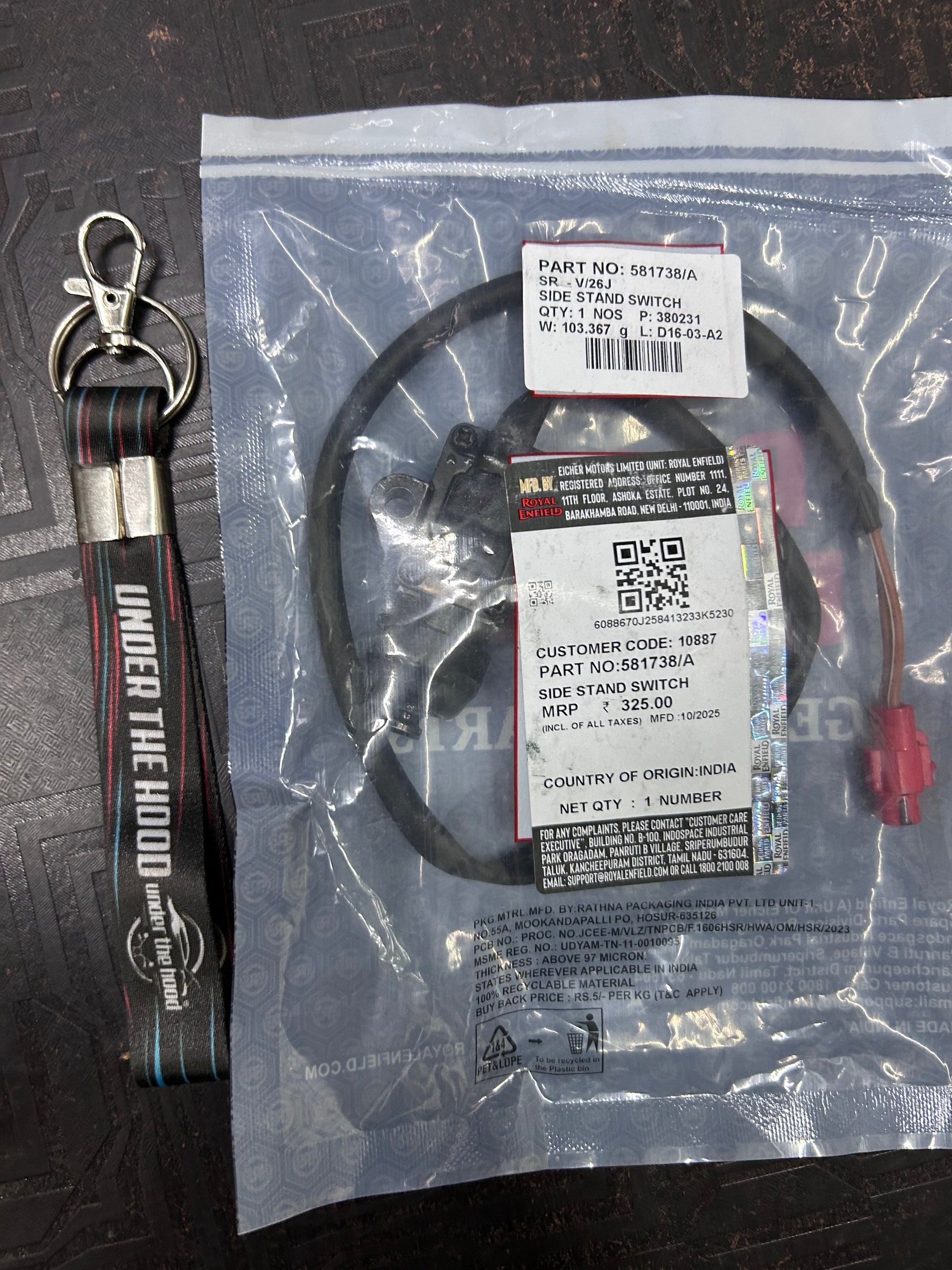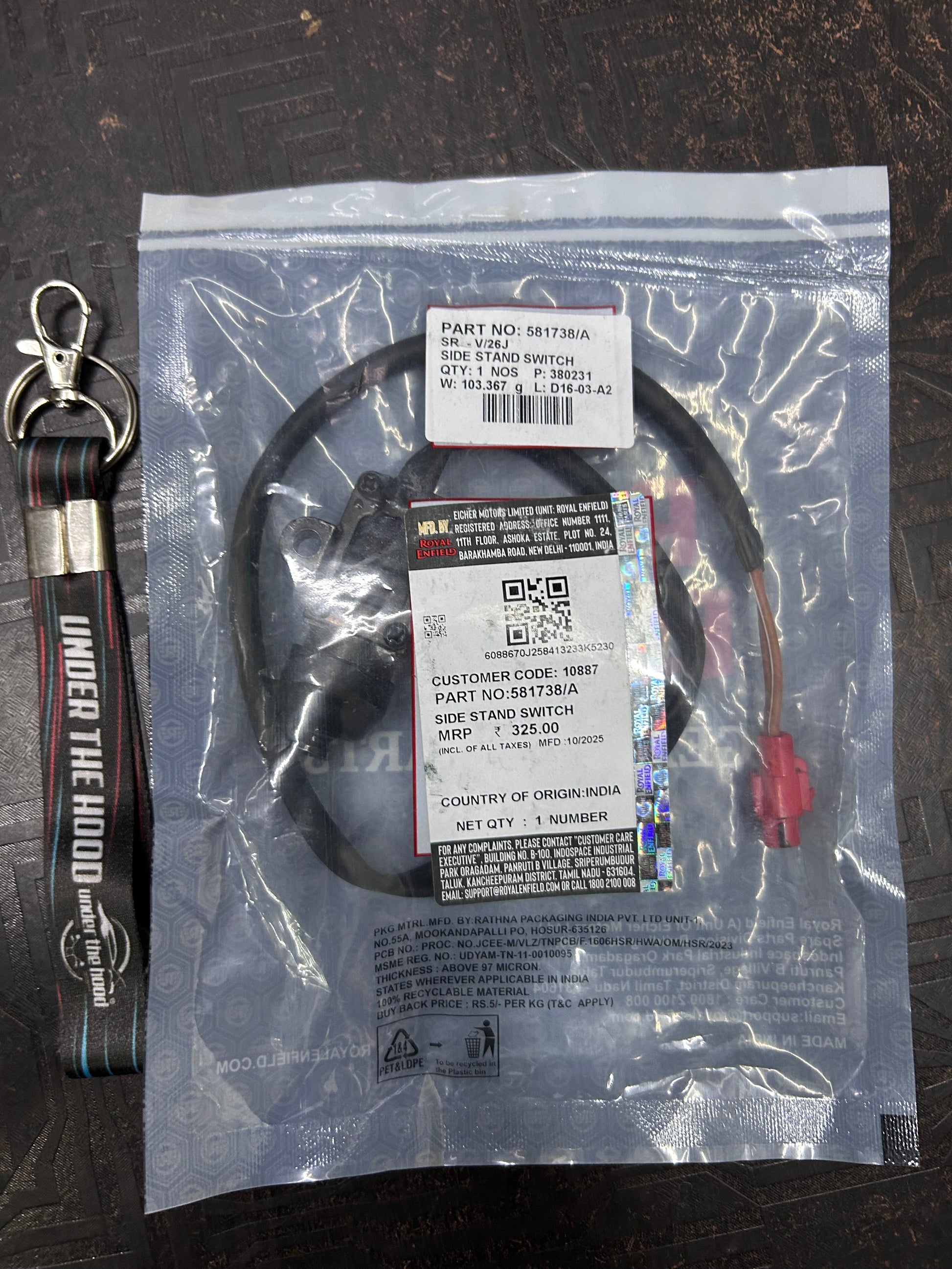 Genuine OEM Royal Enfield side-stand safety switch – Part 581738/A.