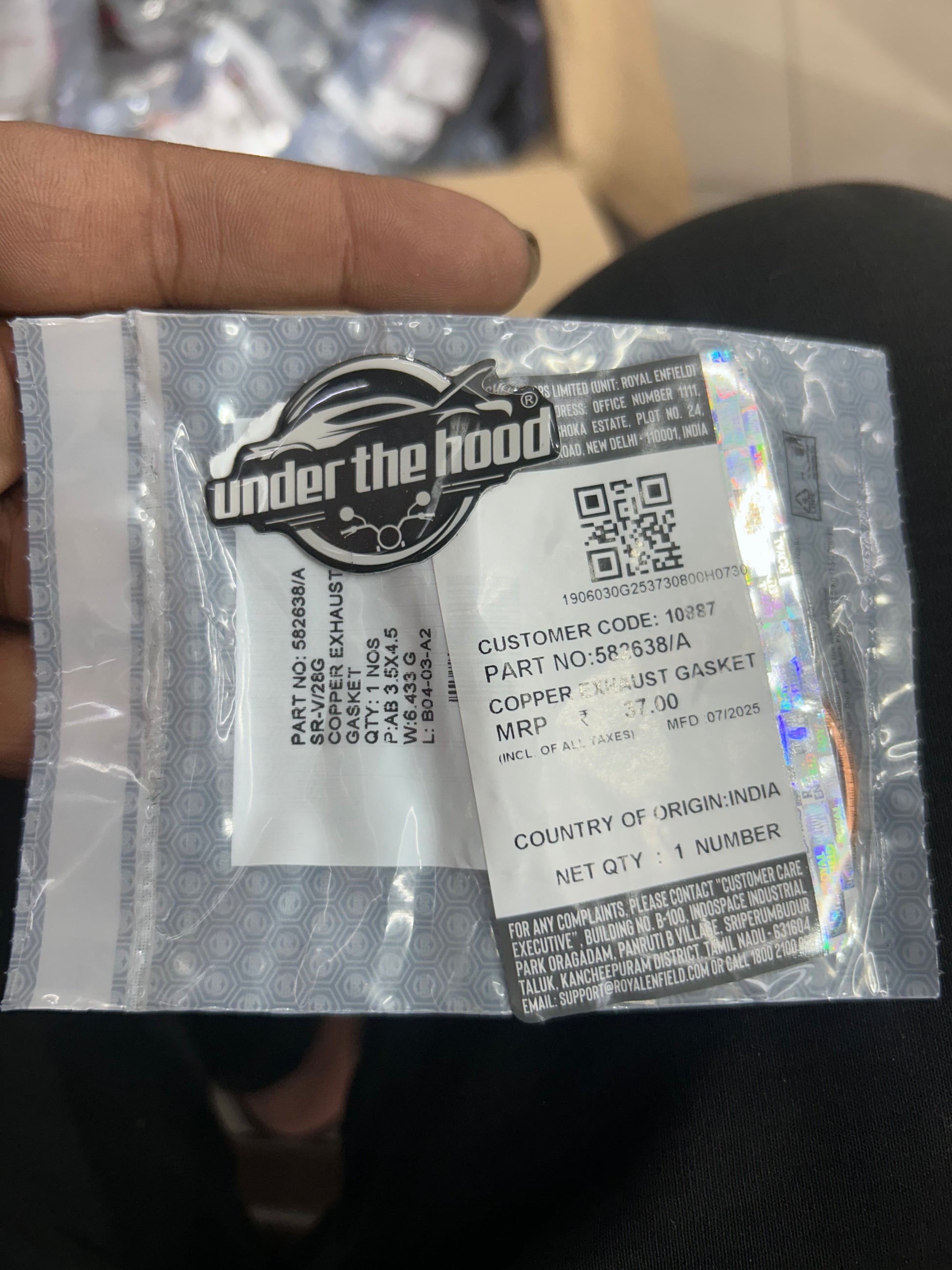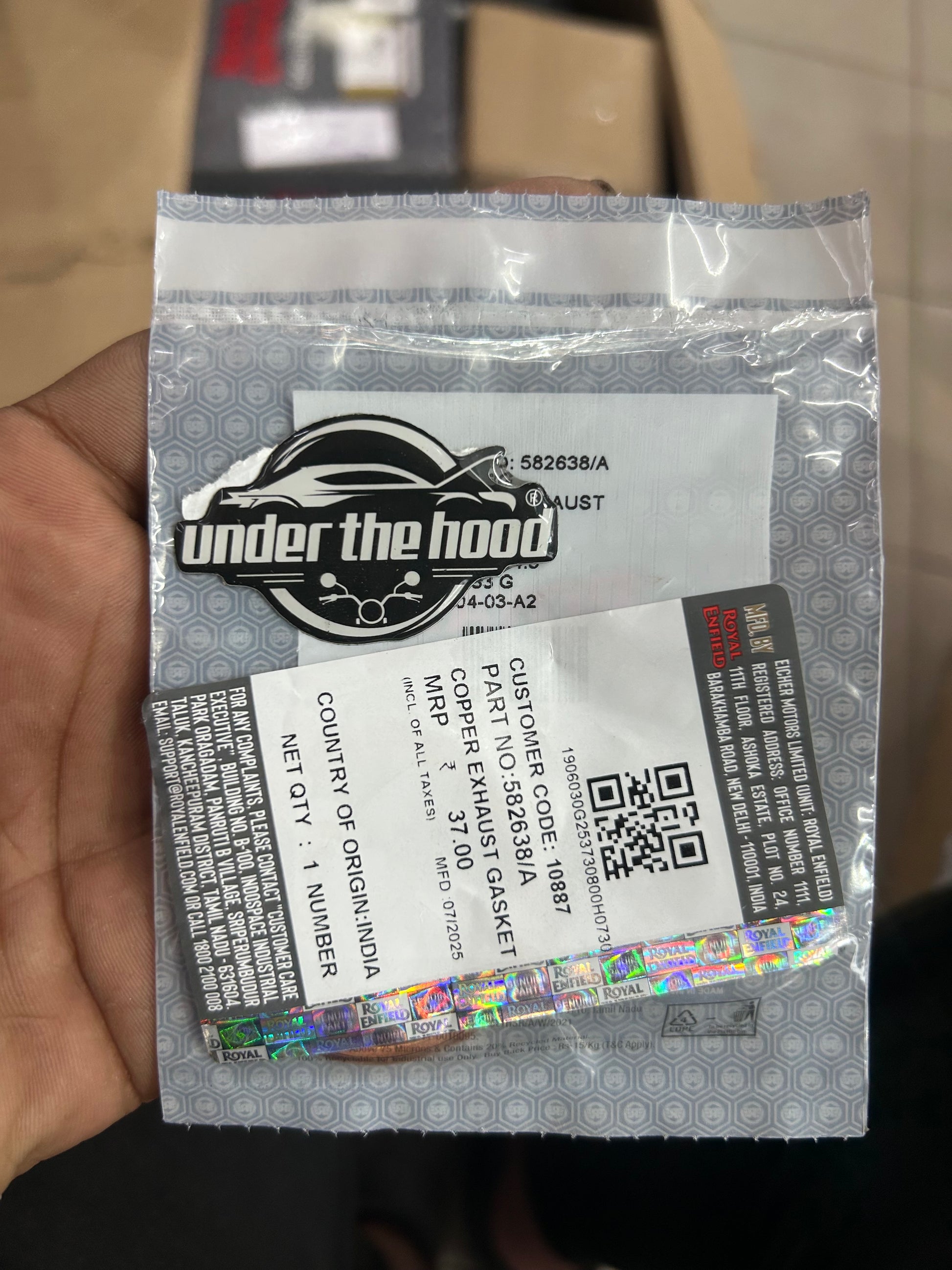 Royal Enfield 582638/A Copper Exhaust Gasket – OEM Seal for Classic Reborn, Meteor, Hunter, and UCE Models