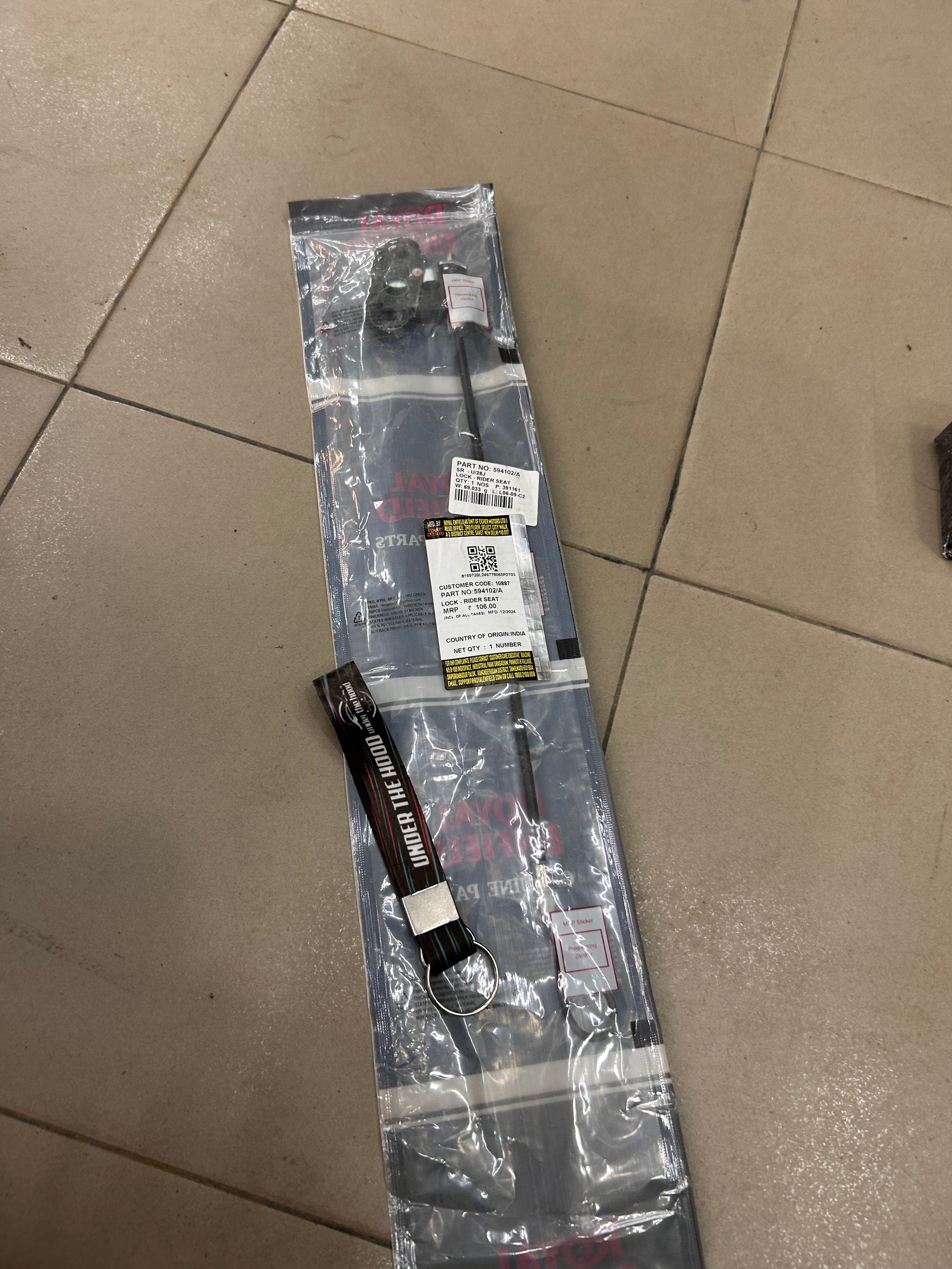 This is the genuine Royal Enfield 594102/A – LOCK, RIDER SEAT used on the Thunderbird family to secure the rider seat to the frame. Dealer/microfiche entries list it exactly as “LOCK – RIDER SEAT (594102-A)” for Thunderbird 350, Thunderbird 500 and the later Thunderbird 350 ABS / Thunderbird 500X BS4 models. That means the mounting points and latch geometry are already matched to your OE seat pan and side panel — no drilling or jugad.