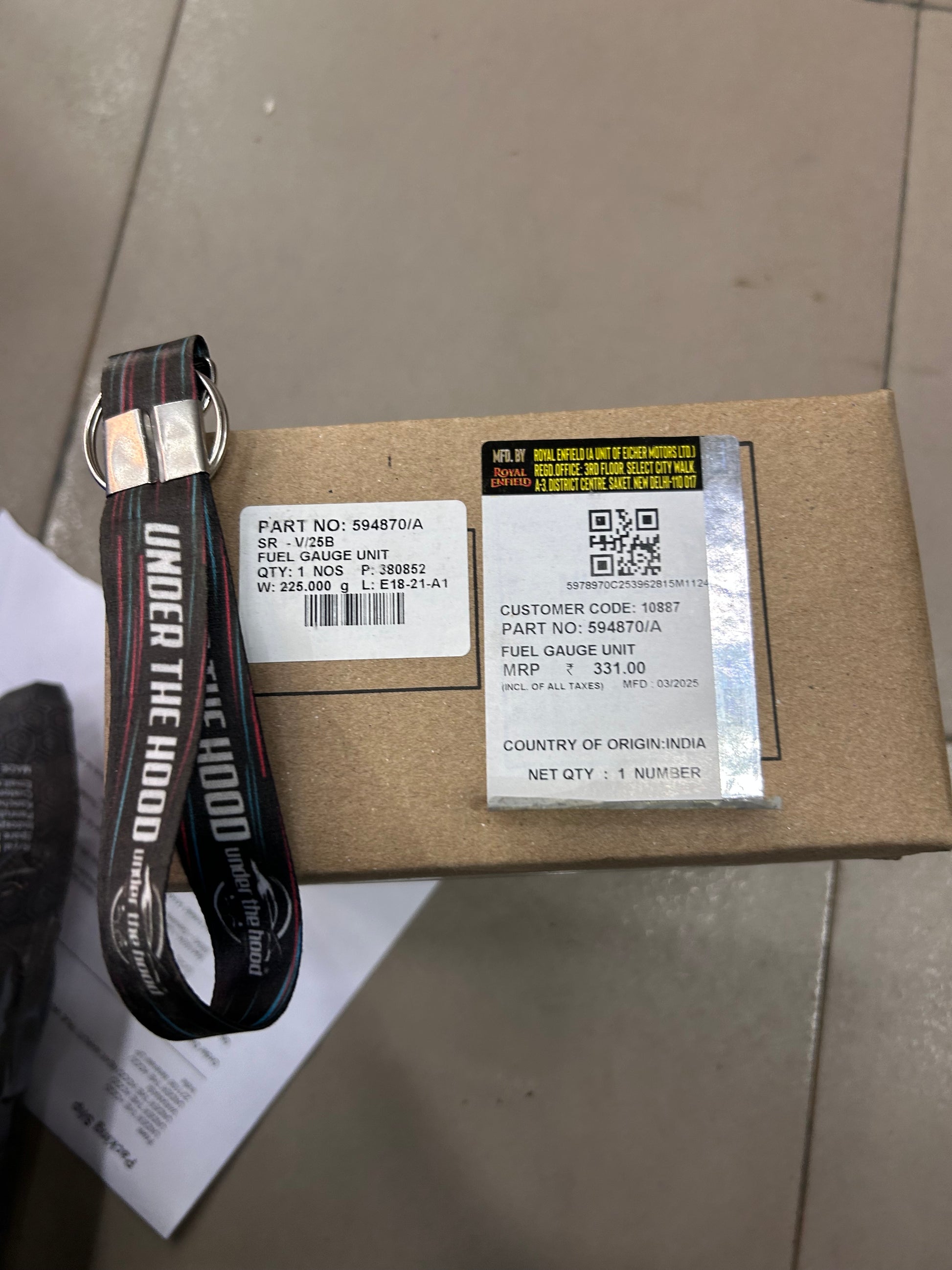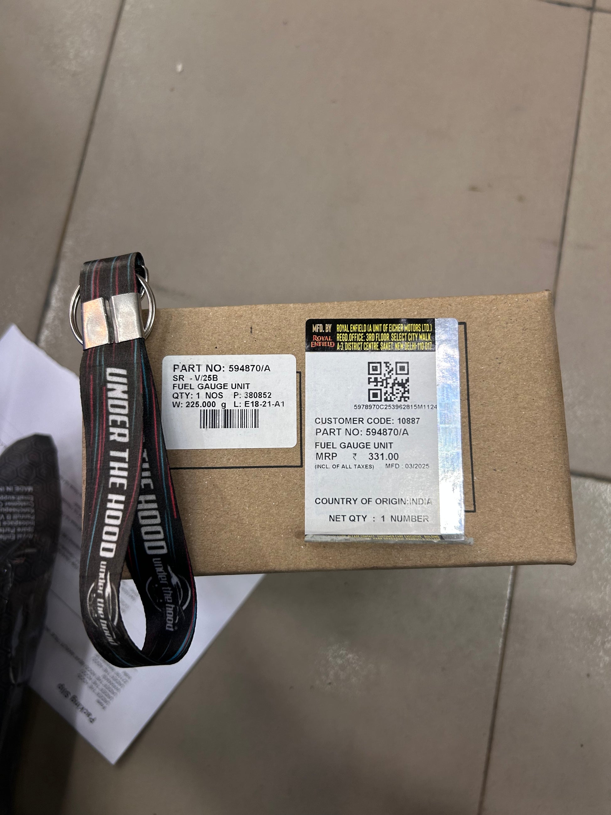This is the fiche-listed Royal Enfield 594870/A – Fuel Gauge Unit used on the Thunderbird family and its Rumbler derivatives. Multiple dealer pages list it exactly as “FUEL GAUGE UNIT – 594870/A” and tie it to Thunderbird 350, Thunderbird 500, Thunderbird X 500, TB 350 BS4, and Rumbler 500/350 – so we can safely publish those models as confirmed, and skip everything else to avoid returns.