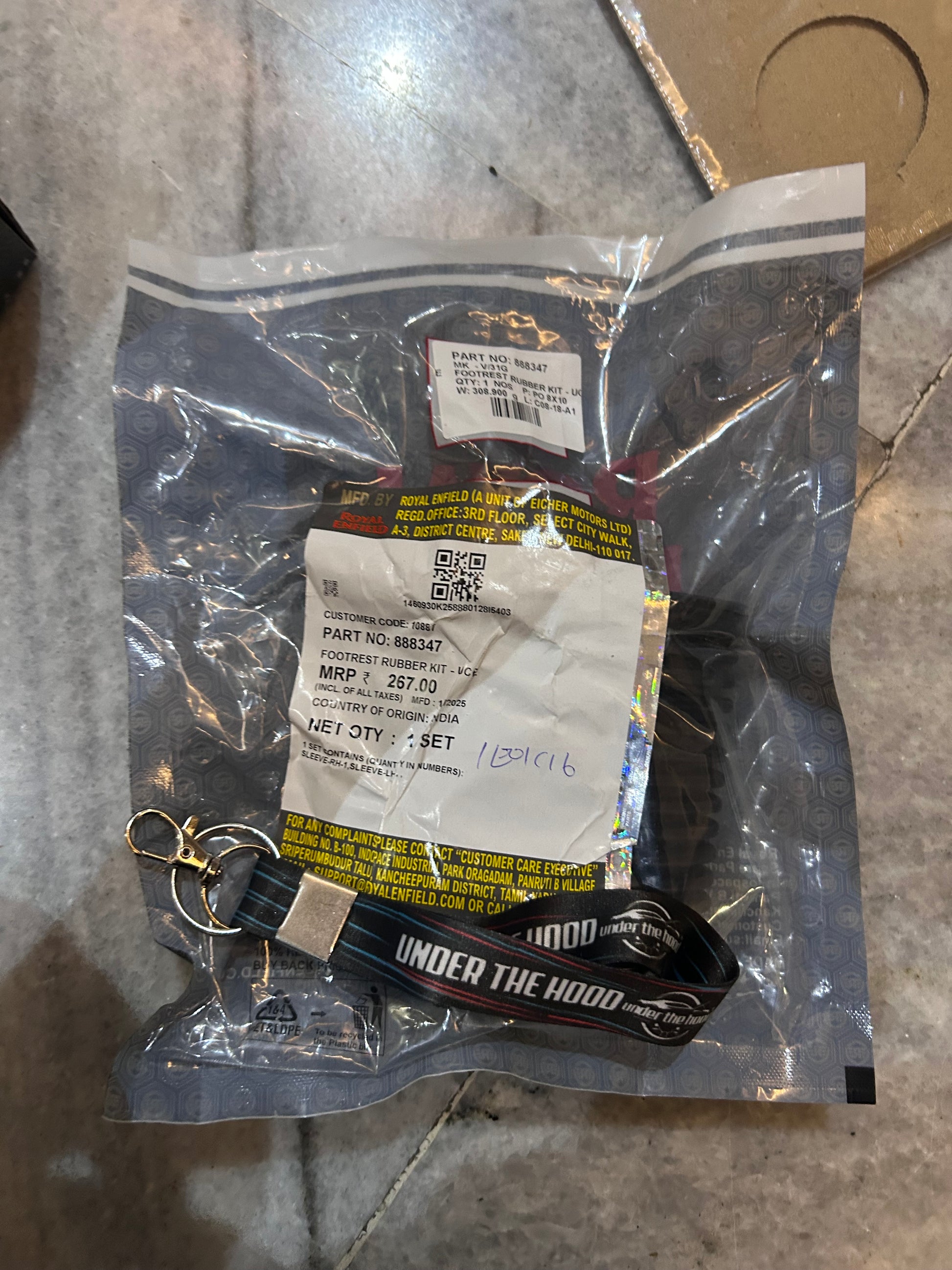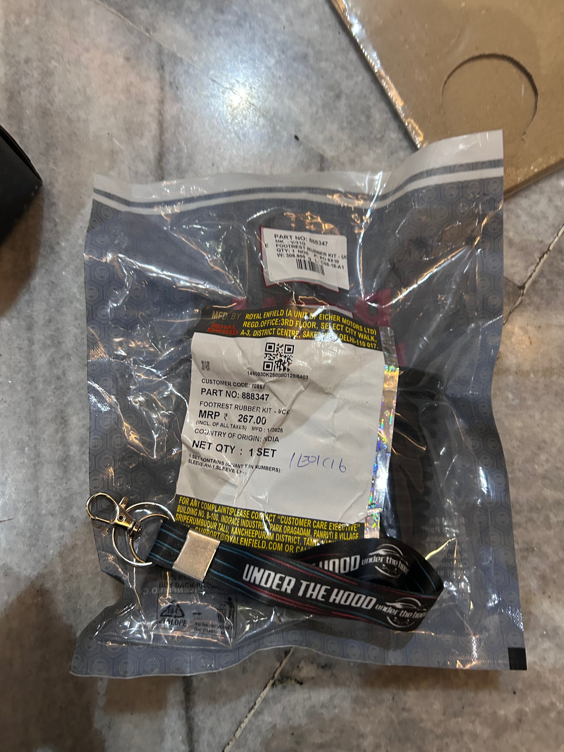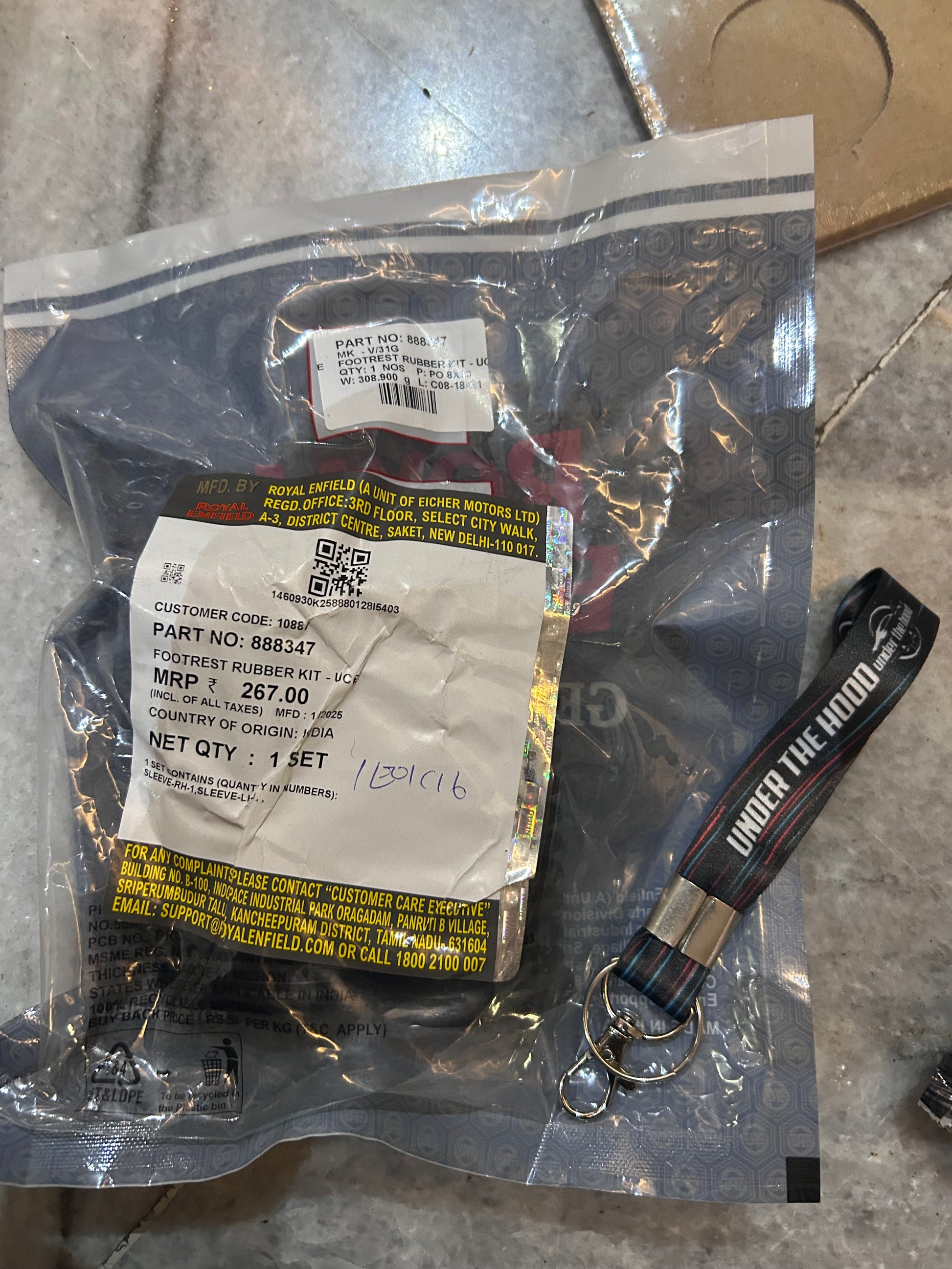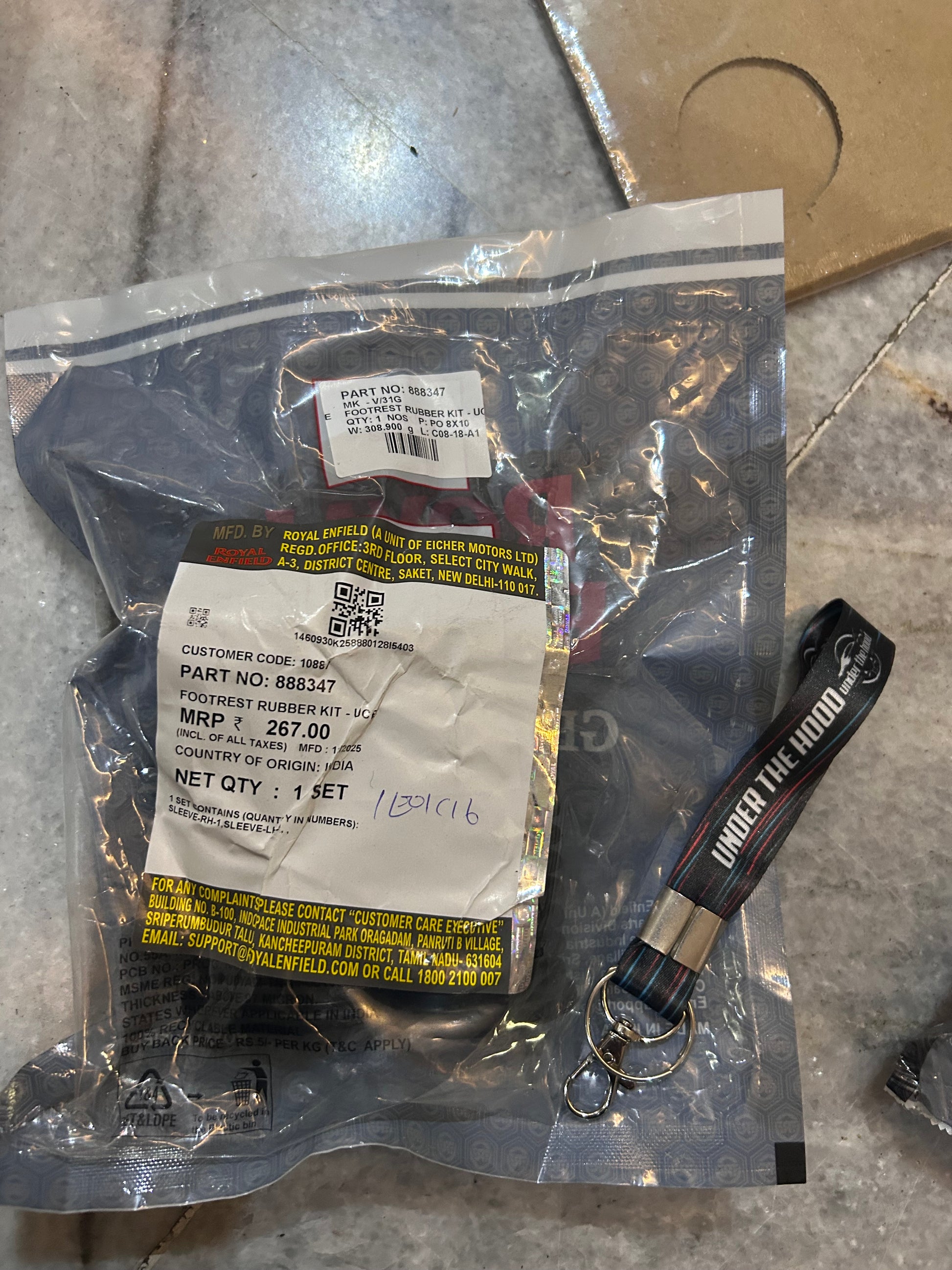 Genuine Royal Enfield 888347 footrest rubber kit for UCE bikes.