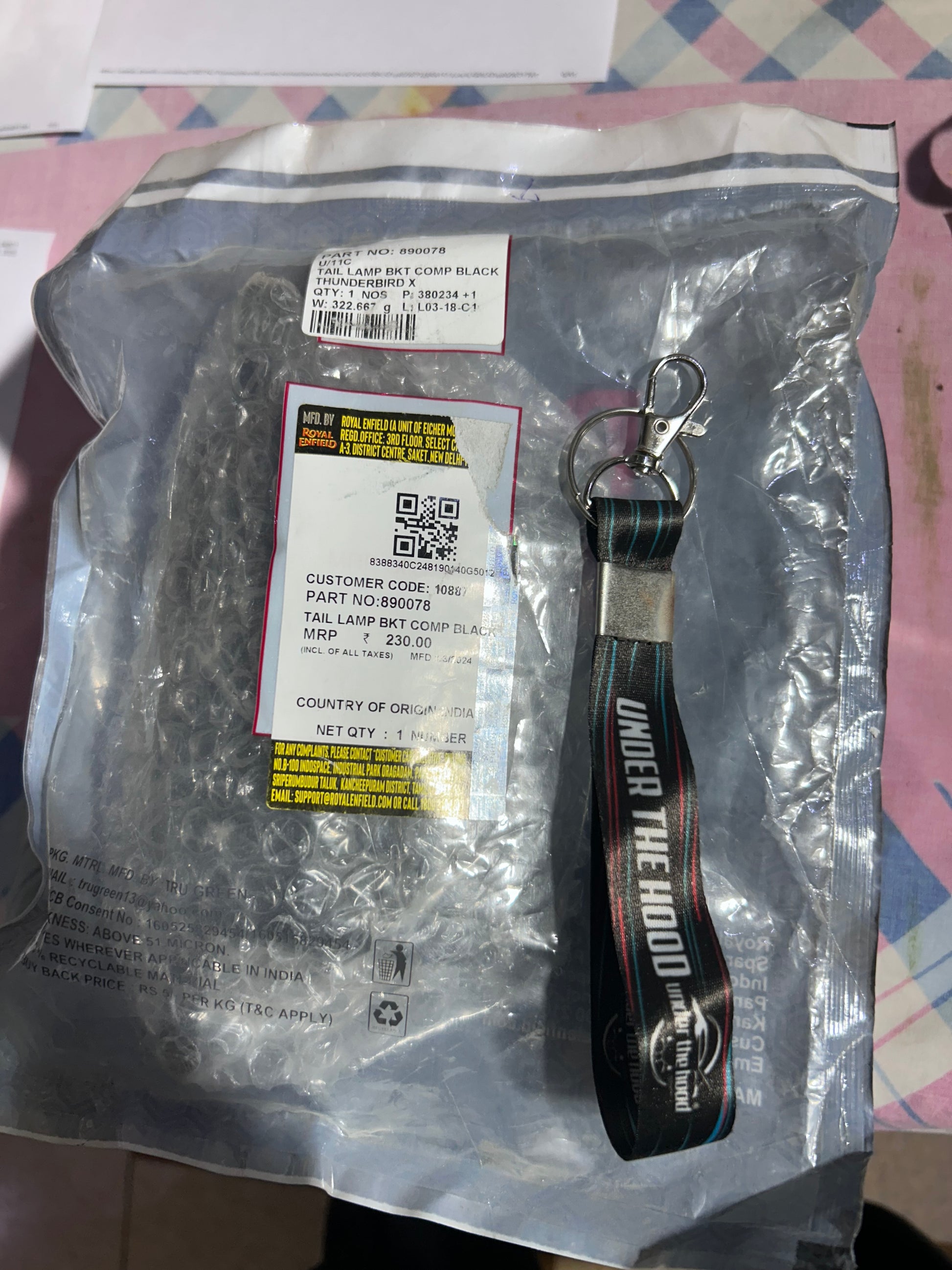 This is the genuine Royal Enfield 890078 – BRACKET ASSY, TAIL LAMP, BLACK supplied specifically for the Thunderbird X series. It’s listed in the Thunderbird X 350 parts sheet as item “BRACKET ASSY – TAIL LAMP” and multiple dealer sites sell this exact number for TB X 350 and TB X 500, so fitment is locked to those bikes — no guesswork.