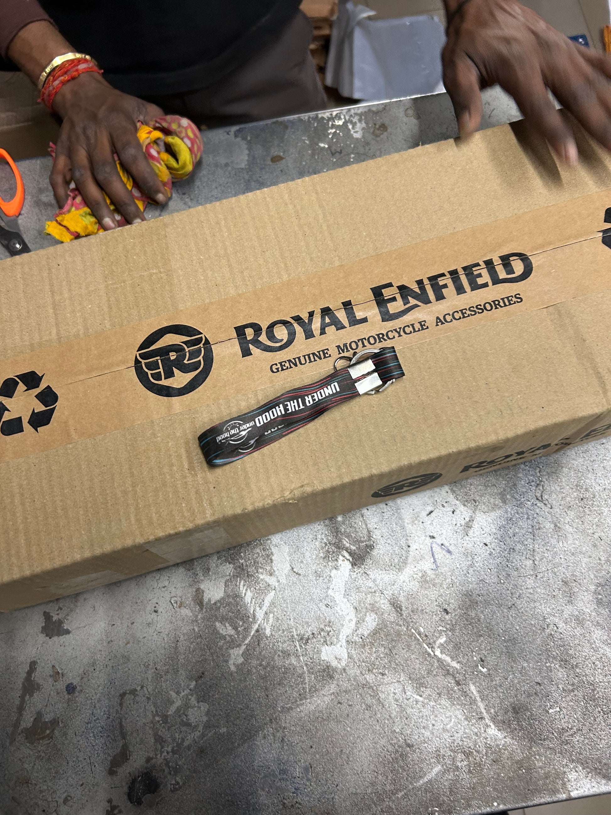 - Genuine Royal Enfield touring handlebar kit (black powder-coated steel).