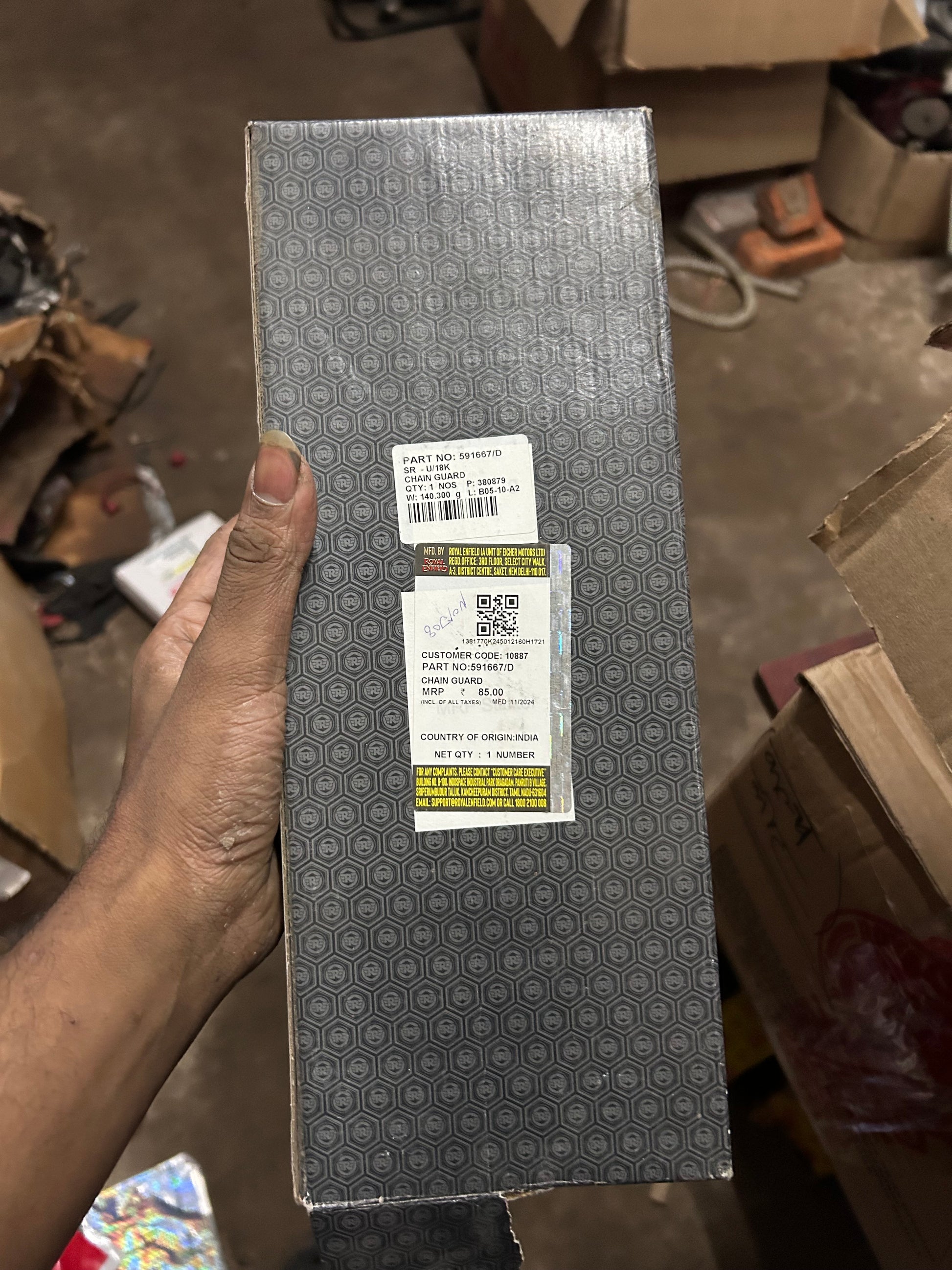 Unlike many aftermarket “universal” guards that misalign at mounts, crack early, or rub the chain, the genuine part matches the original mounting geometry as per the Royal Enfield parts catalogue listings.