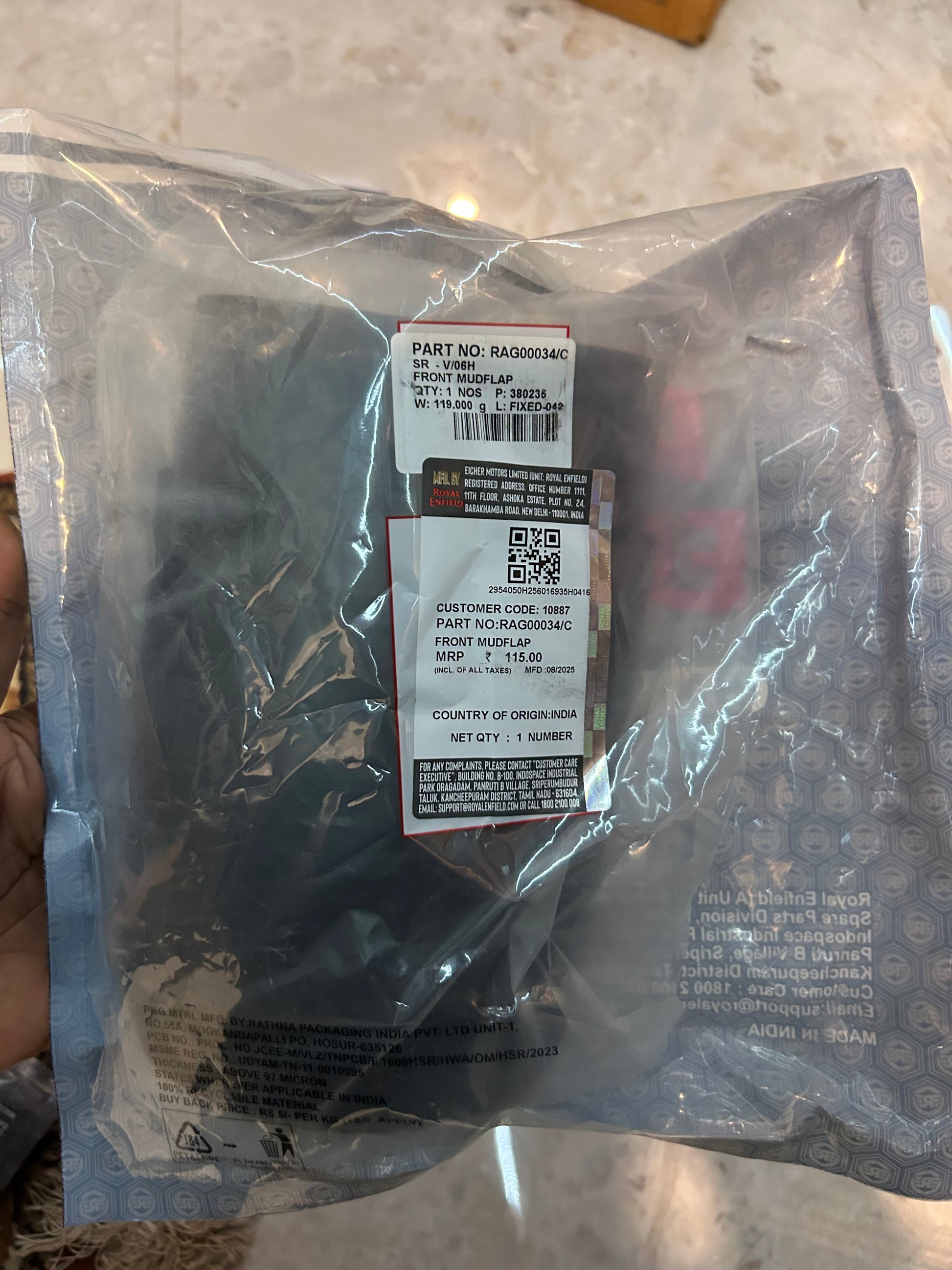 Royal Enfield RAG00034/C – Front Mudflap | Genuine OEM for Hunter 350 (All Colours)