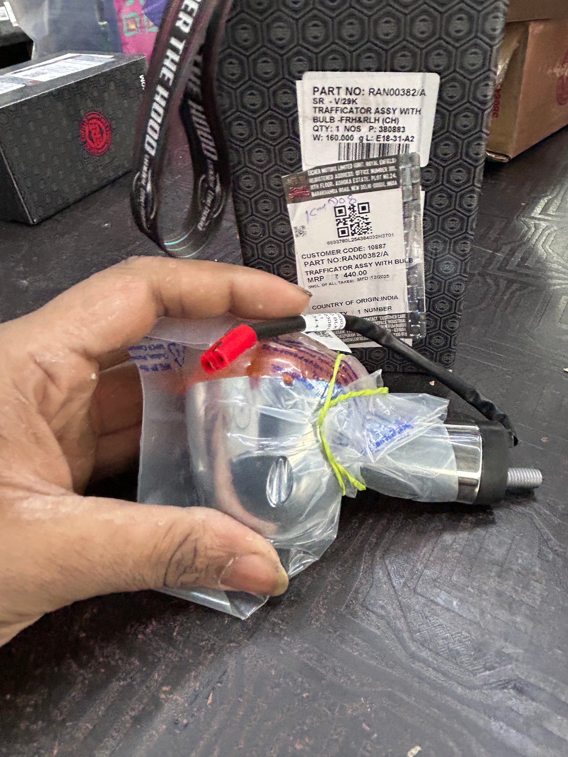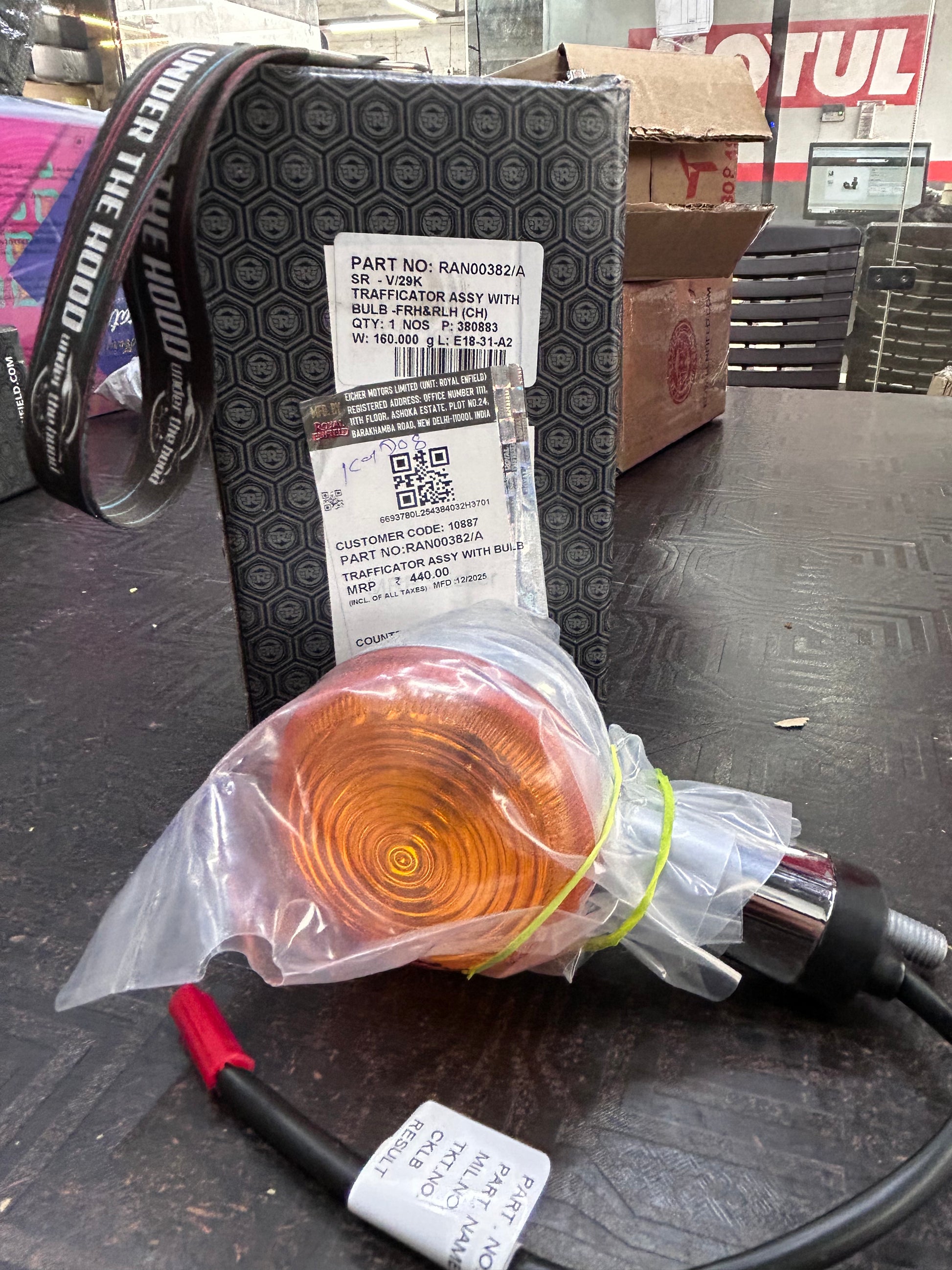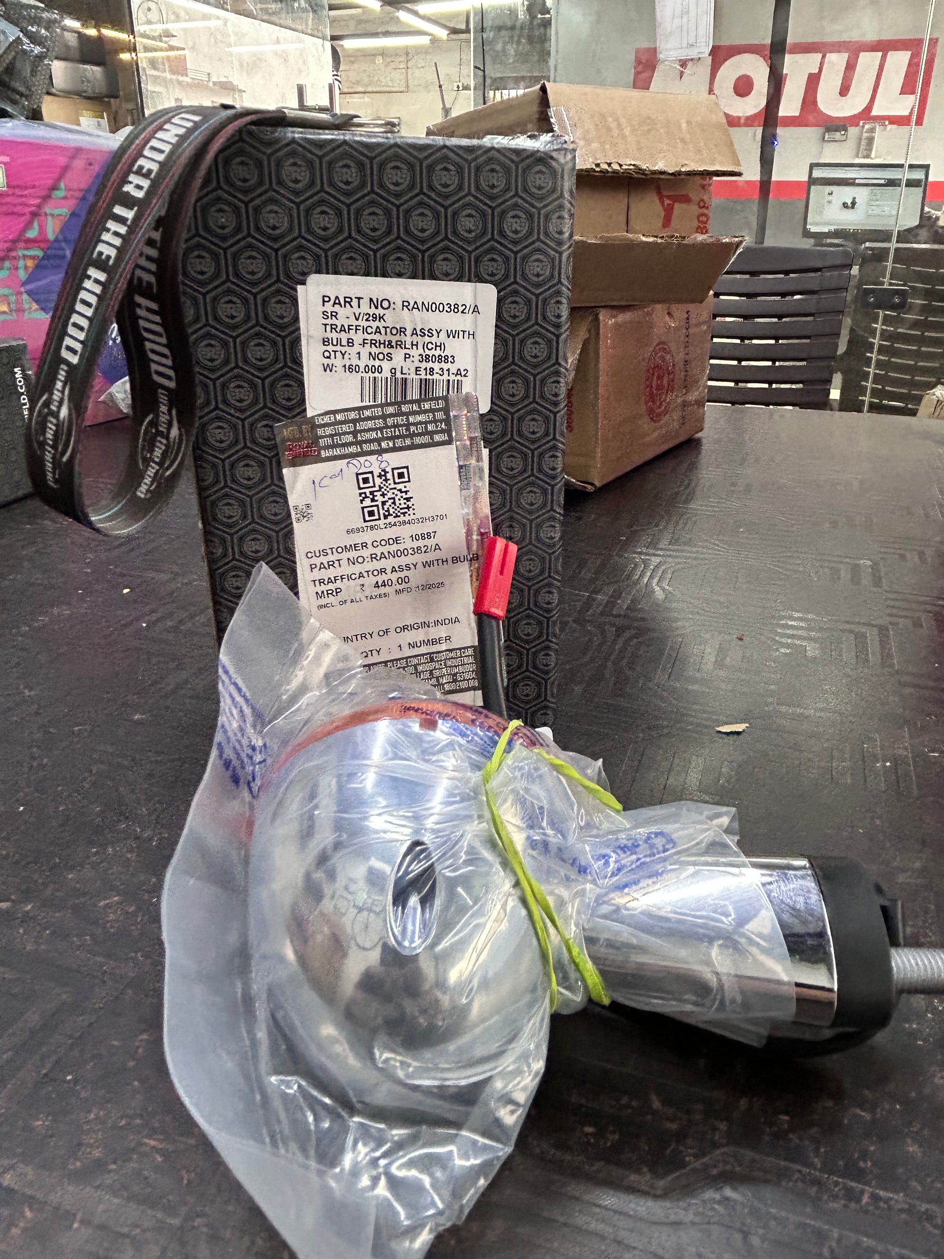 Royal Enfield RAN00382/A – Chrome Trafficator Assembly with Bulb (FRH & RLH) | OEM for Meteor 350 (Supernova Beige) & Classic Reborn