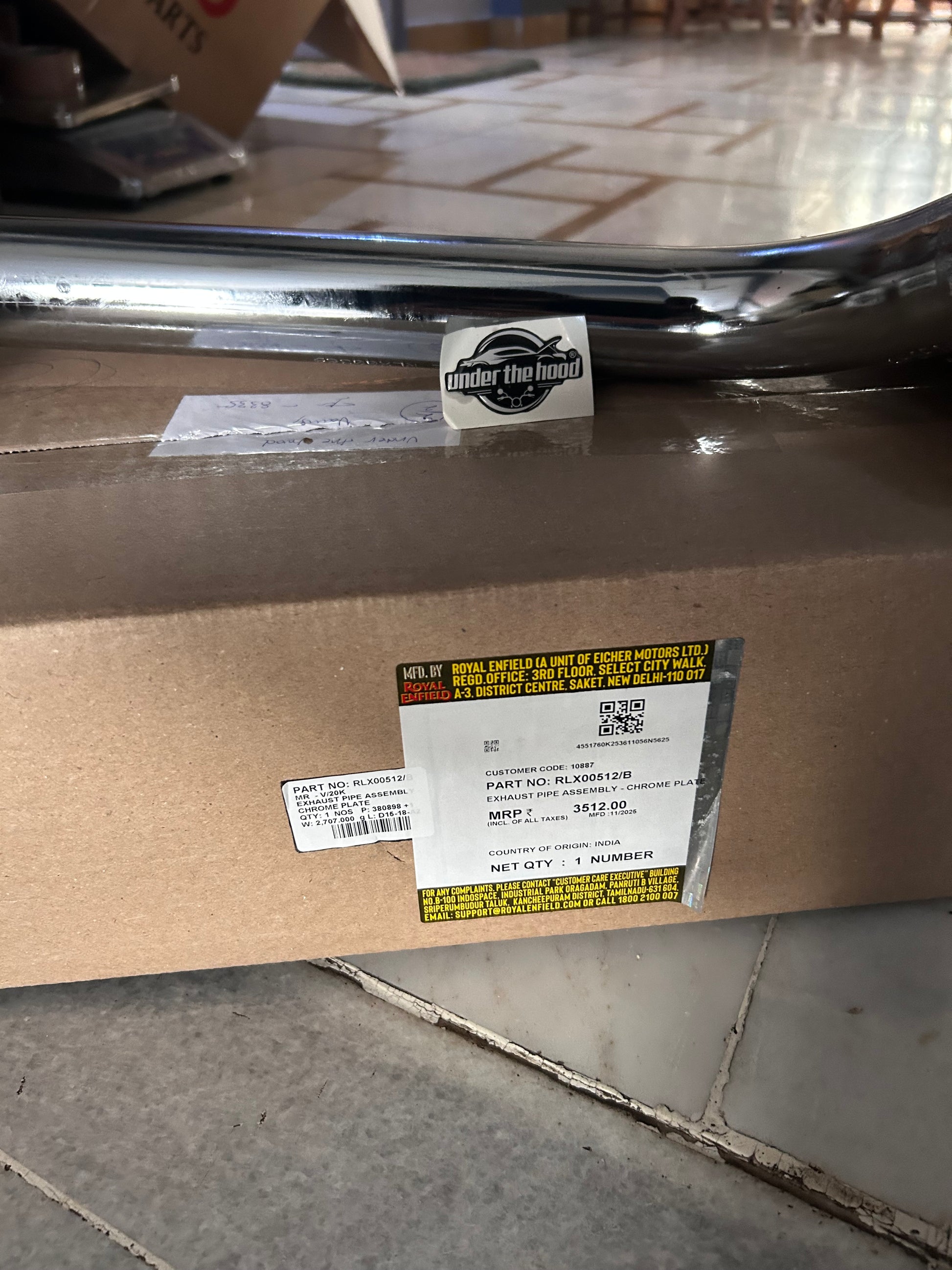 Royal Enfield RLX00512/B – Exhaust Pipe Assembly (Chrome Plate) – OEM for Reborn Classic 350 , New Bullet 350, & Meteor 350