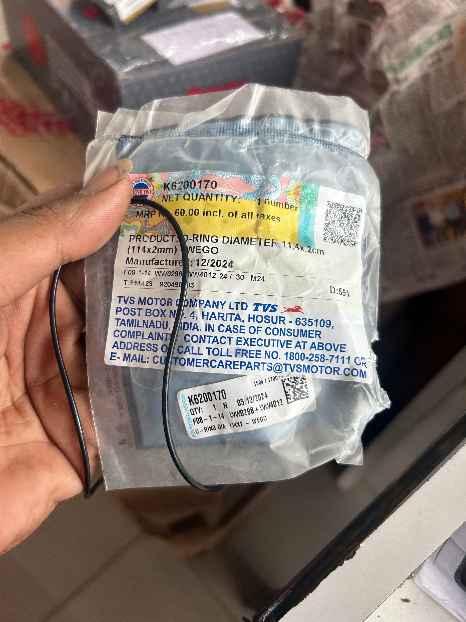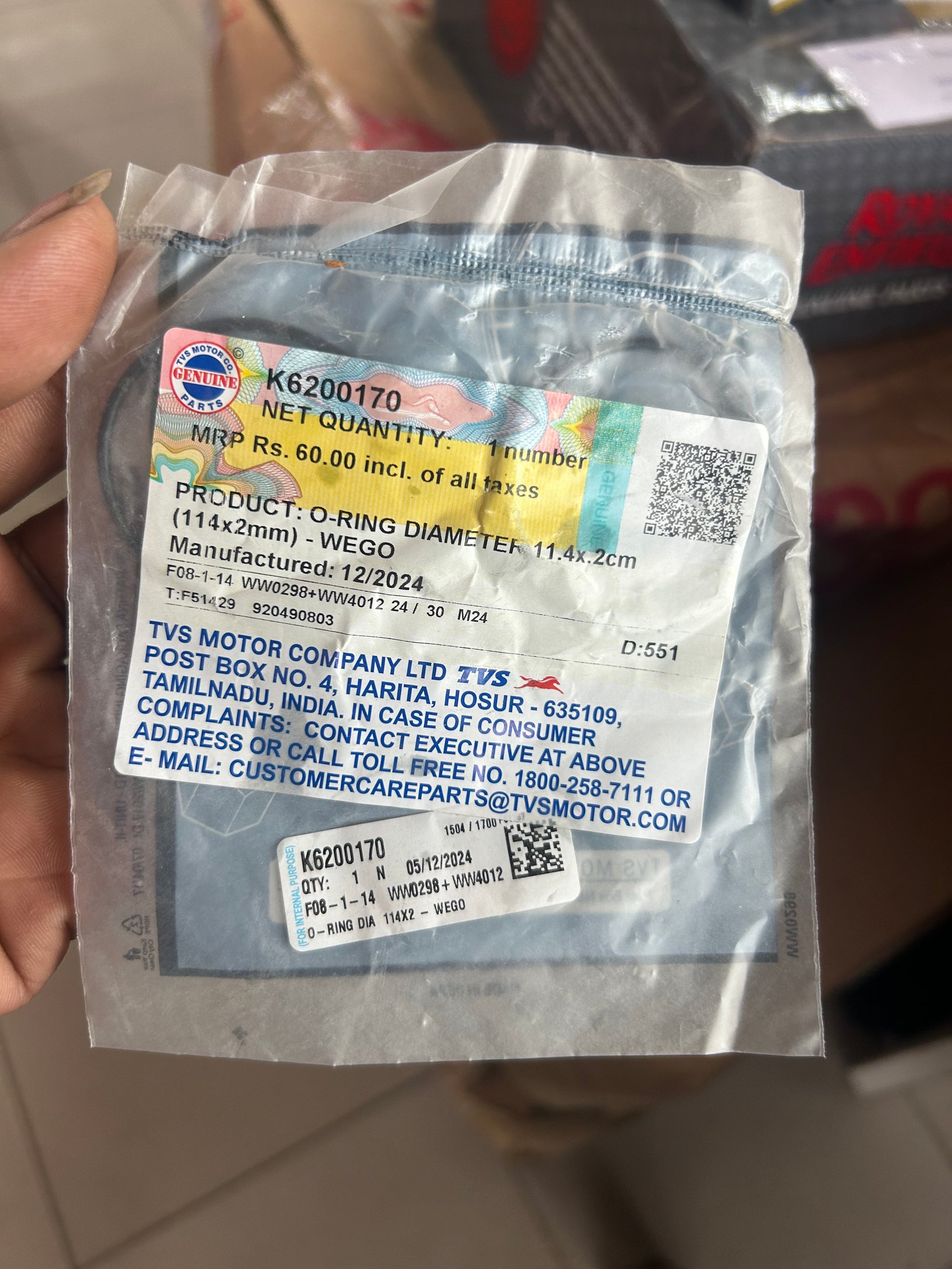 OEM Genuine TVS Wego O‑Ring (114 × 2 mm) – part K6200170