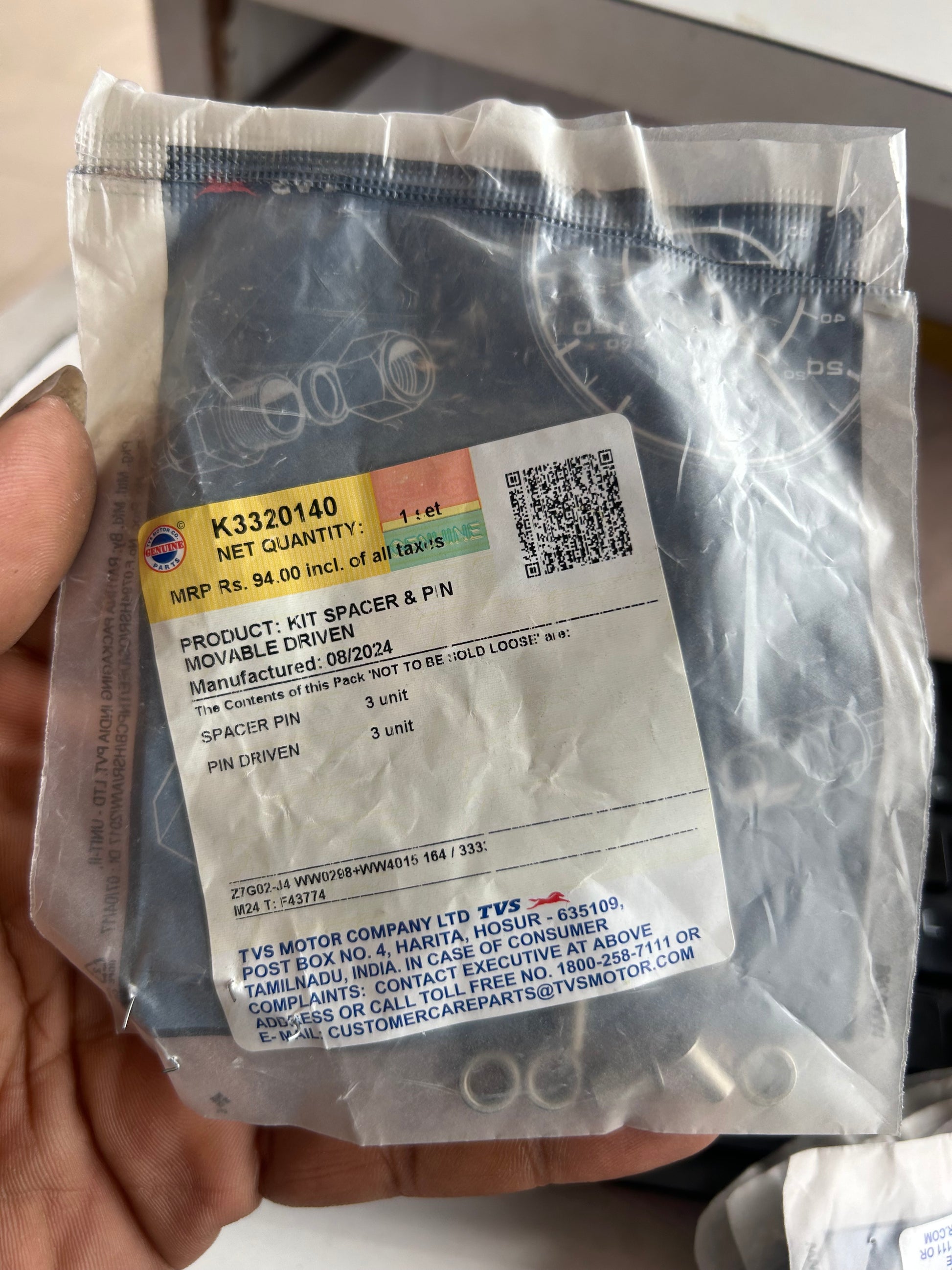 Restore your CVT drivetrain to factory precision with the genuine TVS Spacer & Pin Movable Driven Kit (Part No. K3320140). This OEM-brand kit includes a spacer and movable driven pin, essential for maintaining correct alignment in the roller-based variator system—ensuring smooth transmission engagement and improved CVT belt life. Verified for use in TVS PEP and PEP+ models (PEP90/100) and similar 90–110 cc scooters. Manufactured to TVS’s exact specifications and globally stocked by major parts exporters Direct bolt-in replacement with zero modification required.