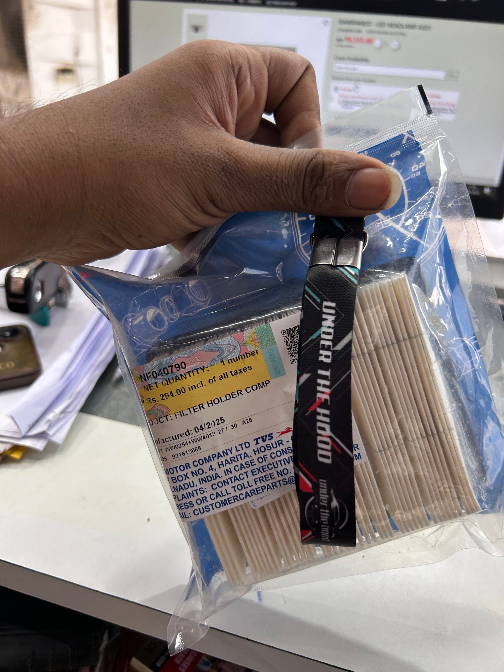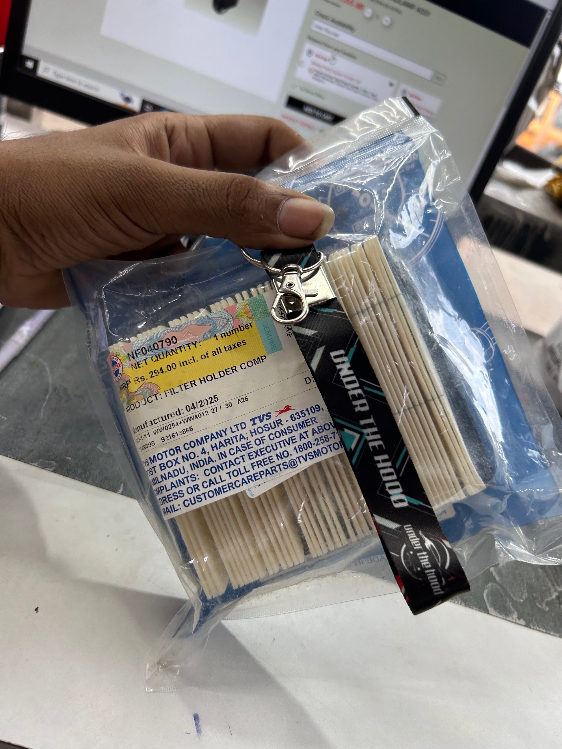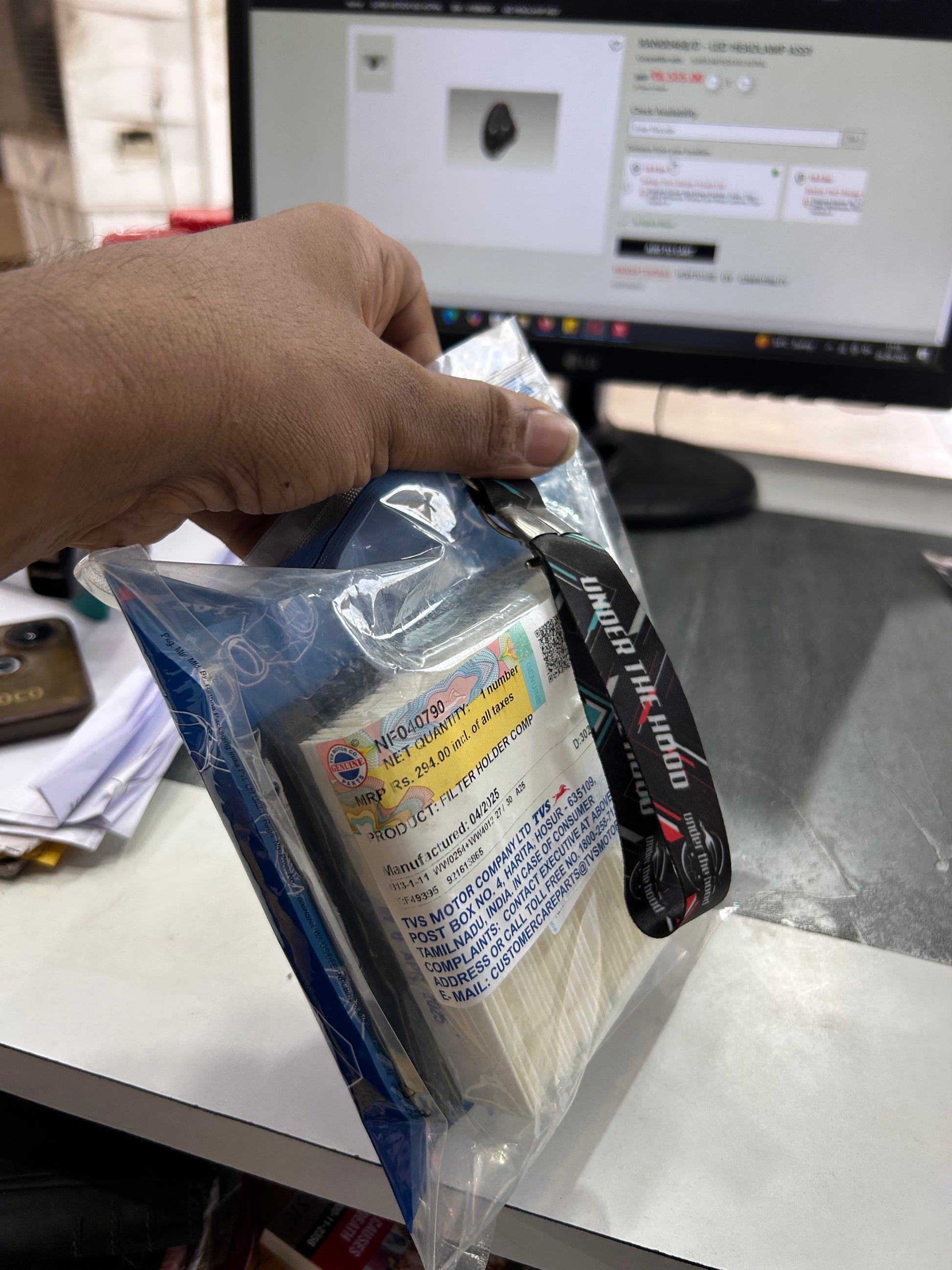 The NF040790 Air Filter (Filter Holder Comp) is the genuine OEM air filter element for the TVS Ronin 225. Though TVS catalogs call it “Filter Holder Comp,” it is in fact the complete air filter cartridge, mounted in its own plastic holder for precise sealing inside the air box.