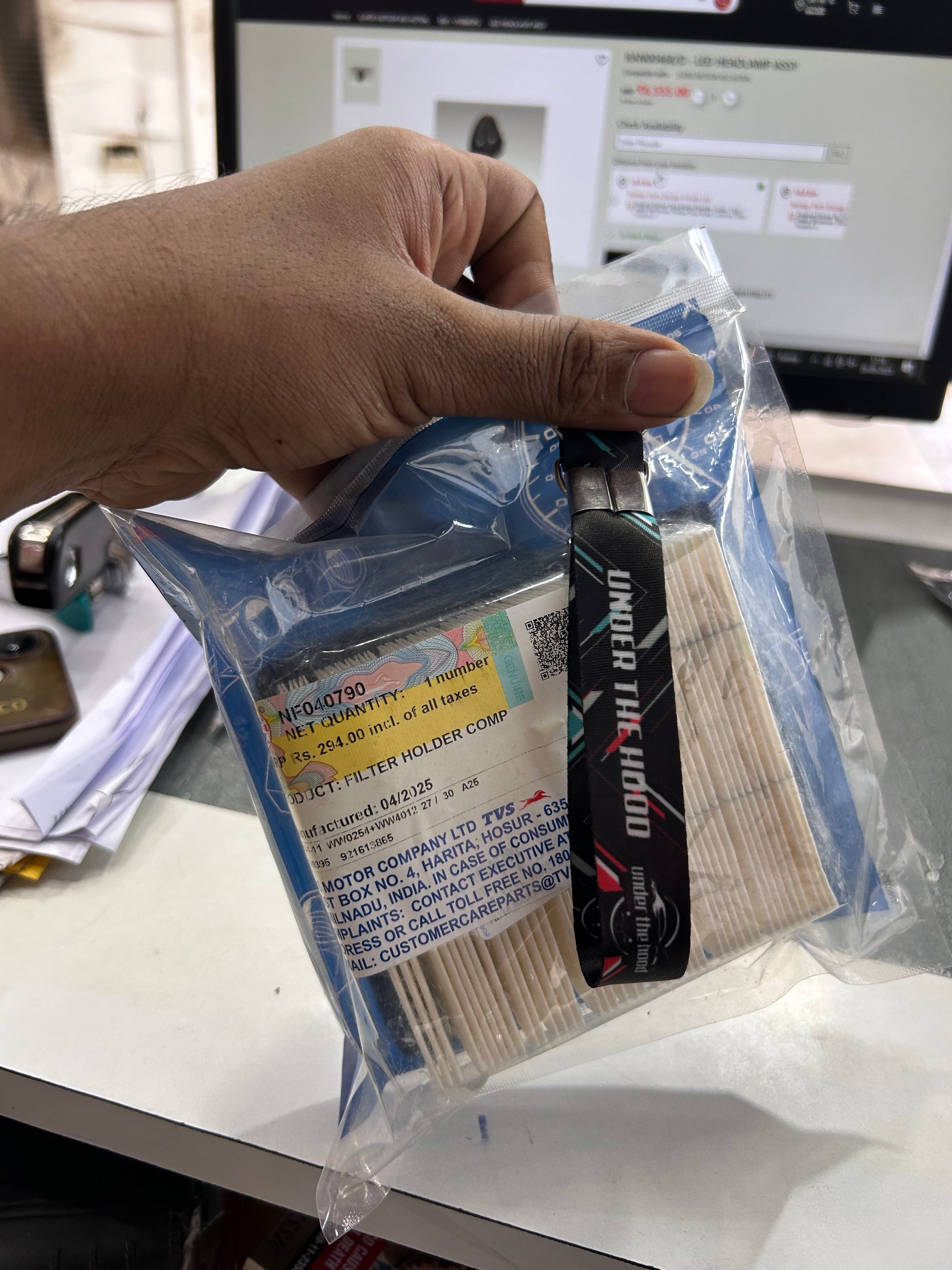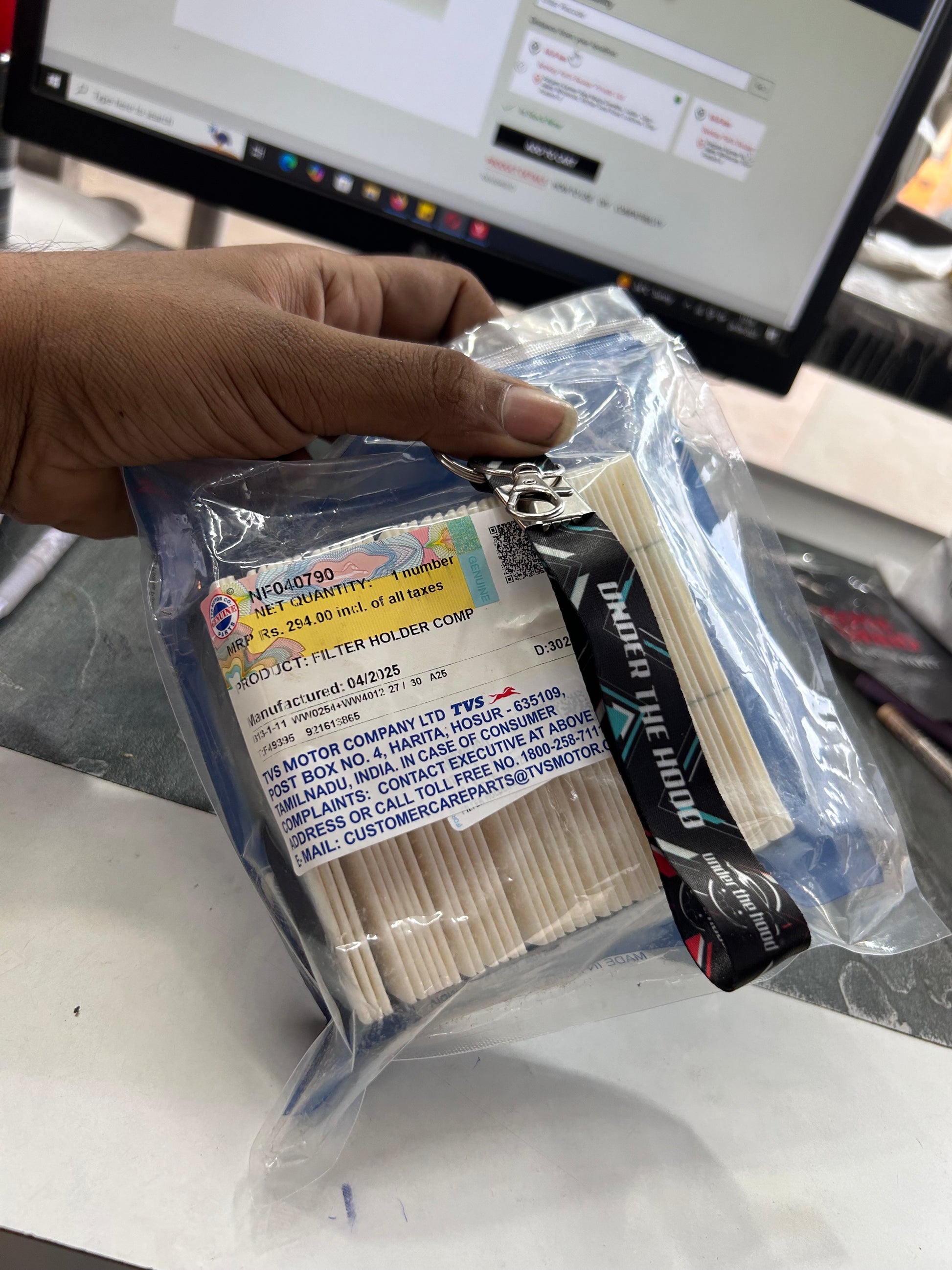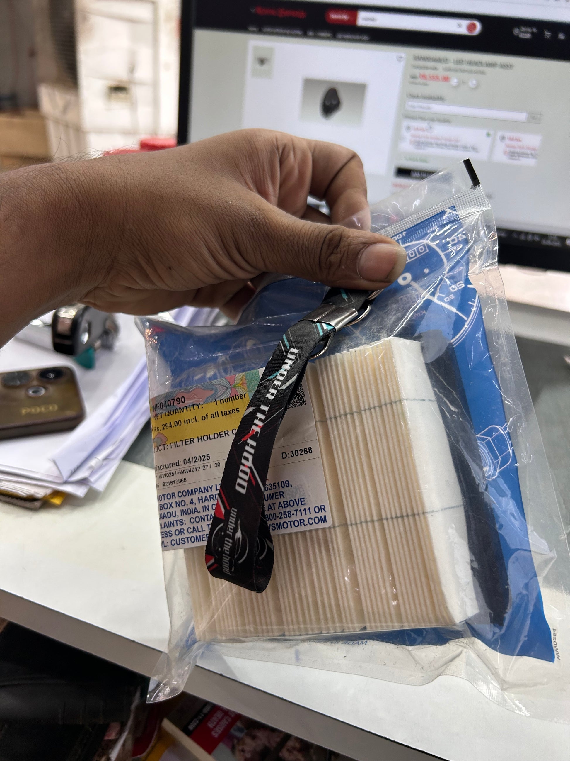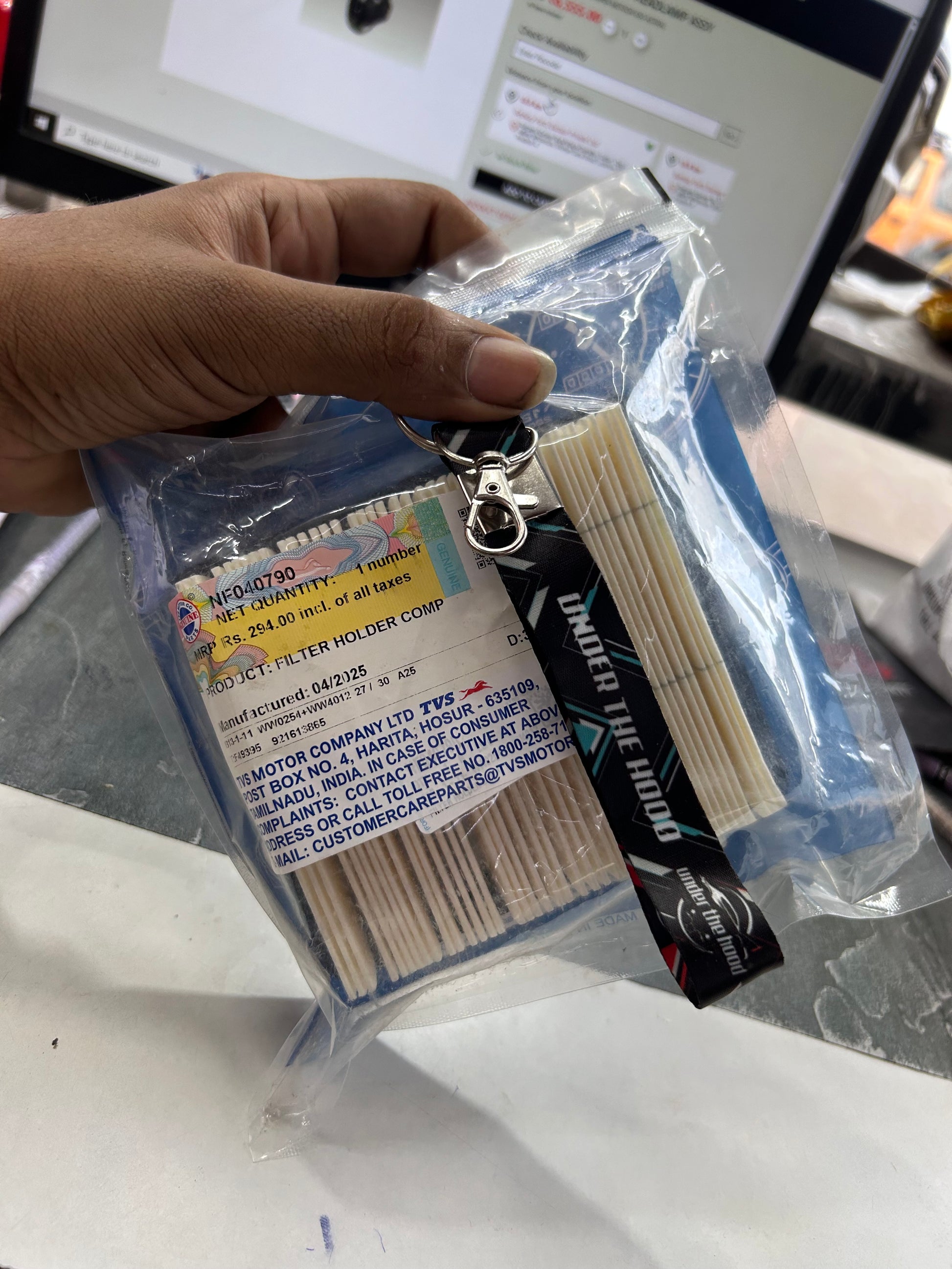 The NF040790 Air Filter (Filter Holder Comp) is the genuine OEM air filter element for the TVS Ronin 225. Though TVS catalogs call it “Filter Holder Comp,” it is in fact the complete air filter cartridge, mounted in its own plastic holder for precise sealing inside the air box.