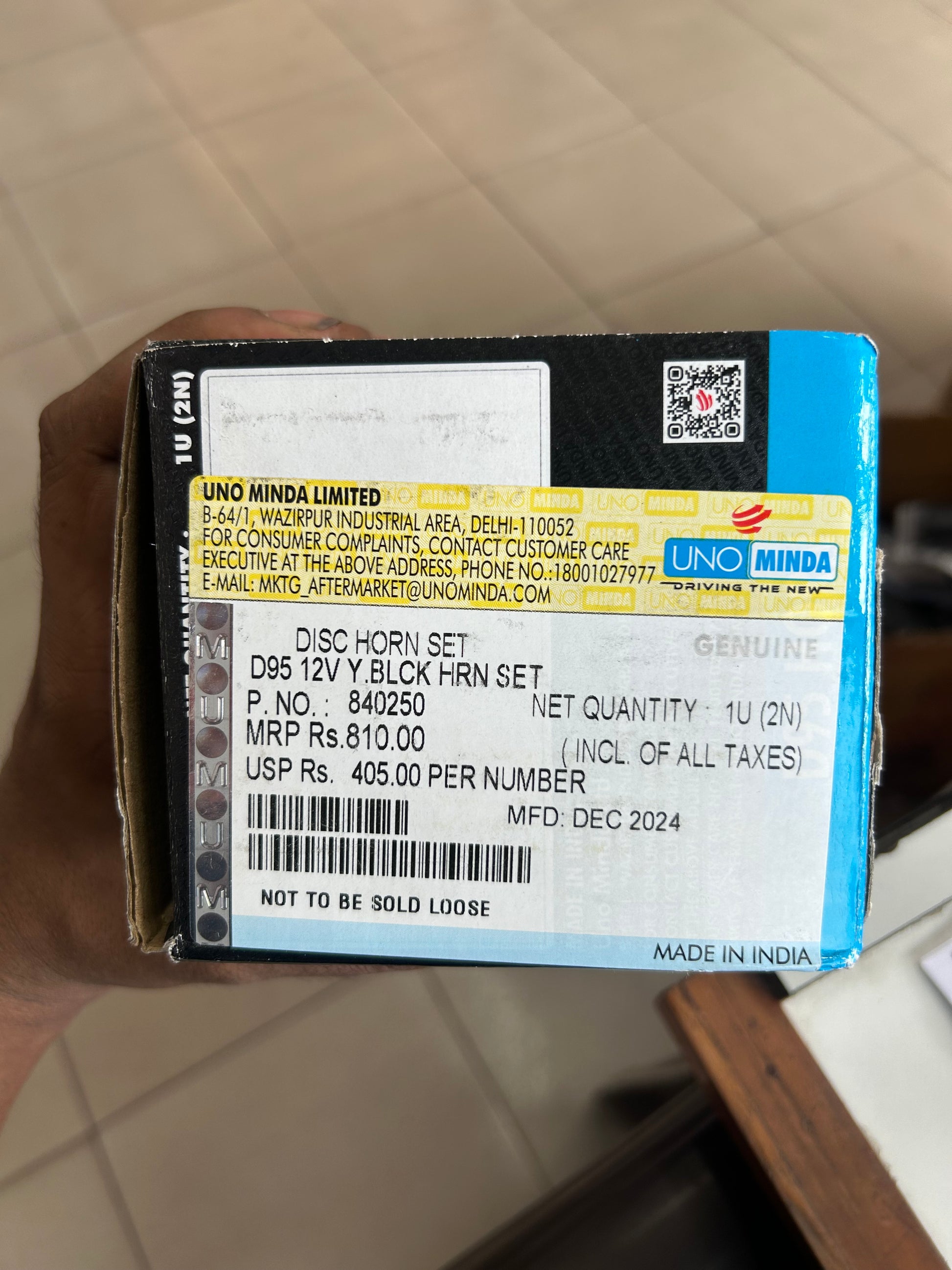 A. Yes, this is 100% genuine Uno Minda D95 horn – OEM grade with manufacturer labels and verified QR.