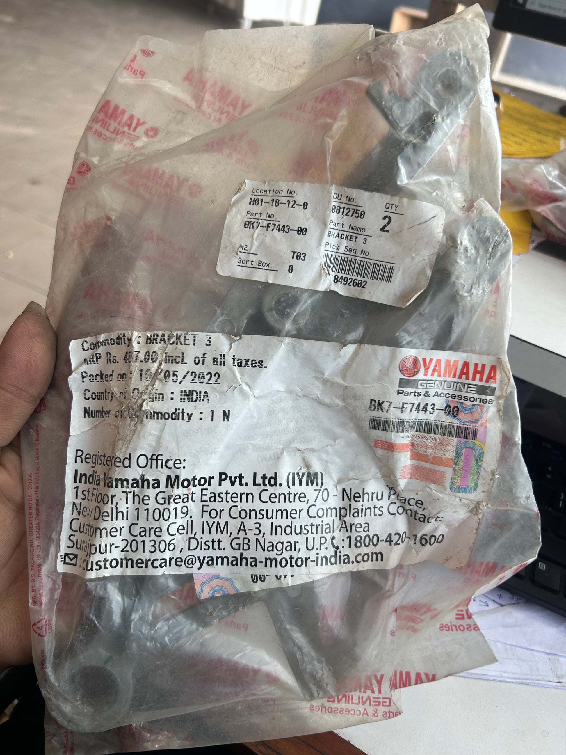 1 x Yamaha Bracket 3 – BK7‑F7443‑00 (Right Side Footrest Bracket)